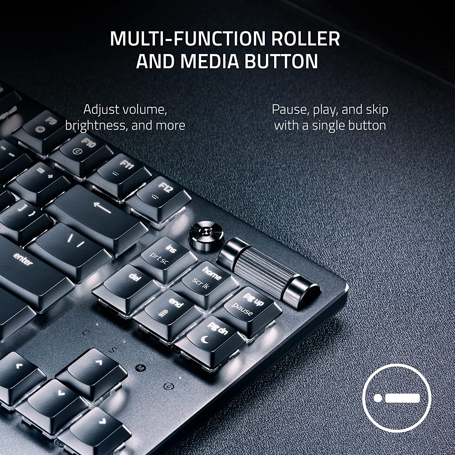 Các Switch cơ Razer (Clicky hoặc Linear) cho khả năng thực thi chính xác và nhanh Ánh sáng trên mỗi phím và underglow 2 bên được trang bị hệ thống chiếu sáng Razer Chroma RGB
