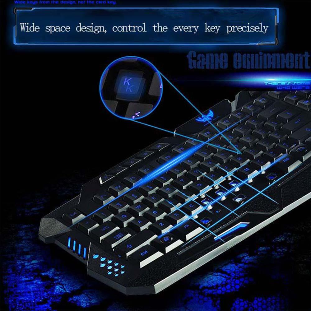 HXSJ brand High-end optical professional gaming mouse with 7 bright colorsLED backlit and ergonomics design for comfortable touch, long-term usewithout fatigue. Bilingual Russian / English 3 Backlight Wired GamingKeyboard leads the evolution of gaming at its best. It features an excitingLED concept with a multitude of lighting options (3 backlight modes,adjustable brightness ).