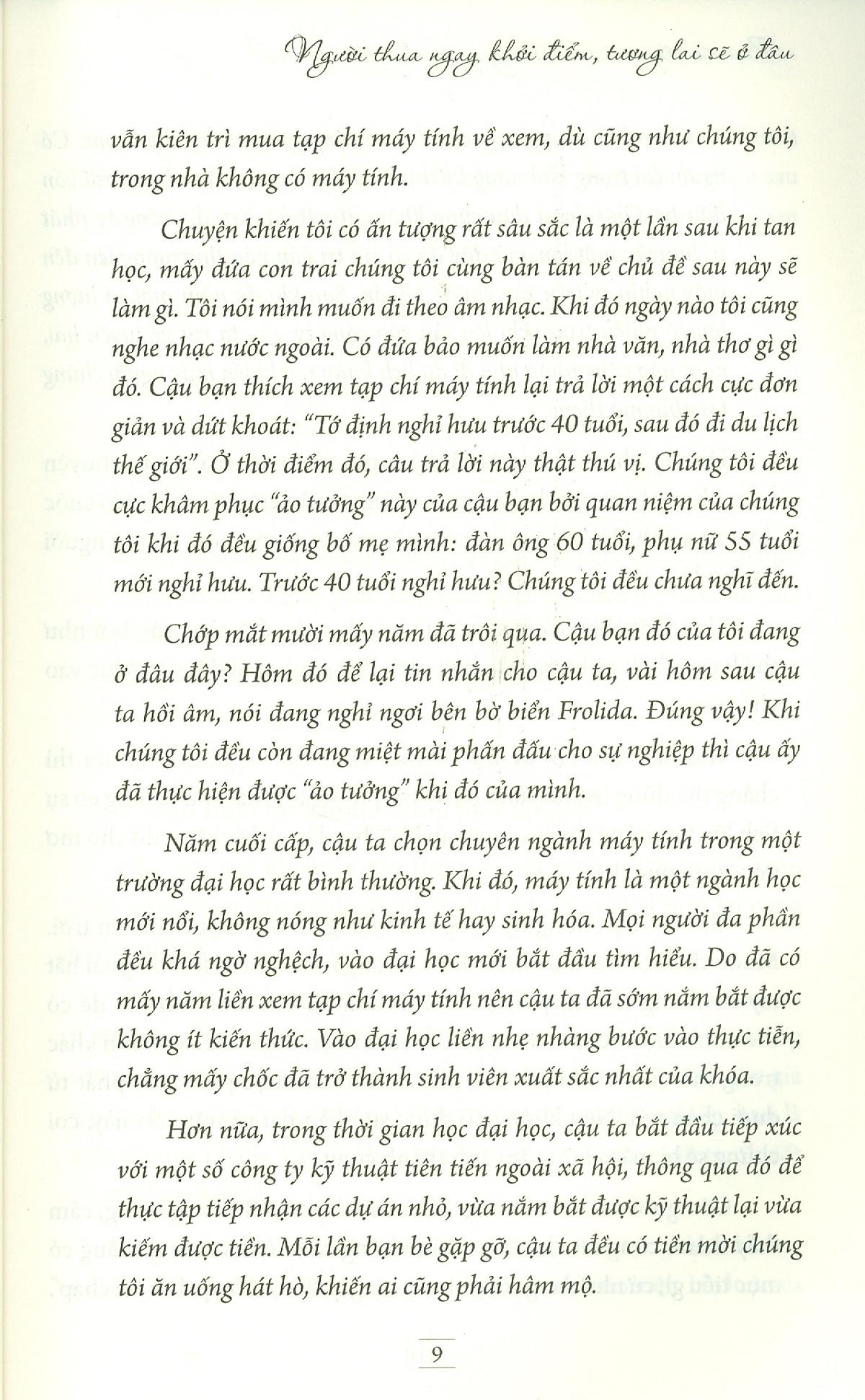 Trạng thái làm việc của bạn hôm nay sẽ quyết định cuộc sống của bạn trong tương lai. Thời gian sẽ không phụ những trả giá của bạn. Nếu bạn còn trẻ, không cố gắng chính là ích kỷ. Xét cho cùng, không phải chúng ta bẩm sinh là kẻ thất bại, ngại gì mà không can đảm hơn một chút? Dù sao cũng chỉ sống một lần. Đừng chỉ biết ca thán. Hãy dành hết sức lực để biến cuộc đời trở nên tốt đẹp hơn. Thực sự tận hưởng trong tương lai chính là cống hiến hết mình cho hiện tại.