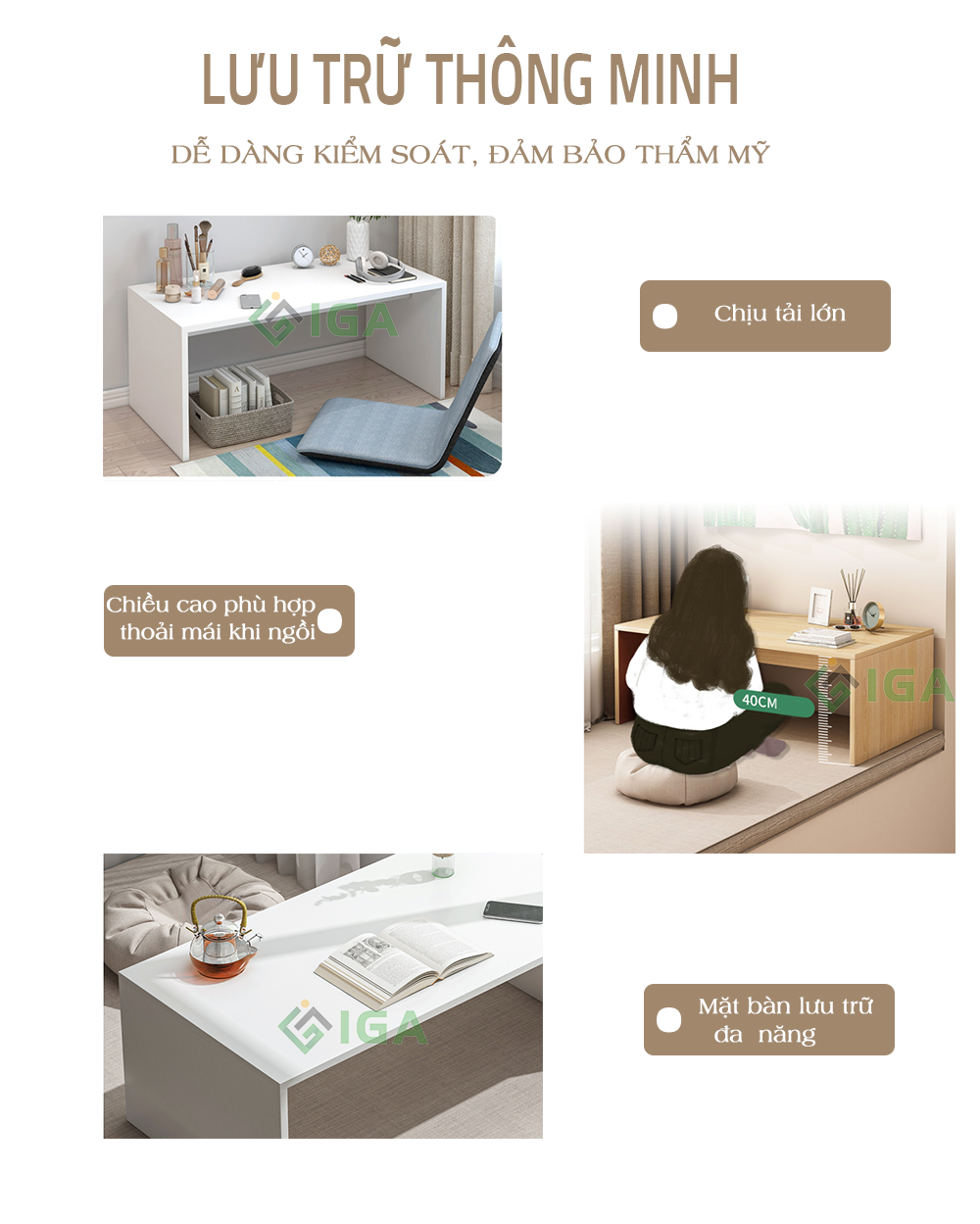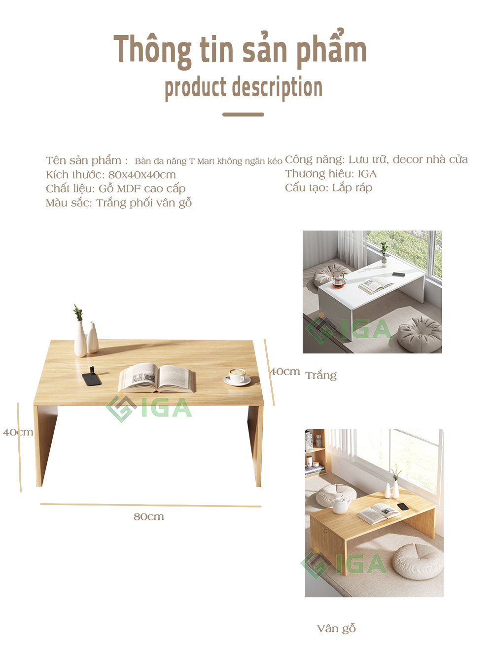 - Tên sản phẩm: Bàn để kinh phật gấp gọn cho phật tử thương hiệu IGA - Chất liệu: Gỗ mdf phủ melamin chống xước, chân thép chống ghỉ phủ sơn tĩnh điện. - Kiểu
