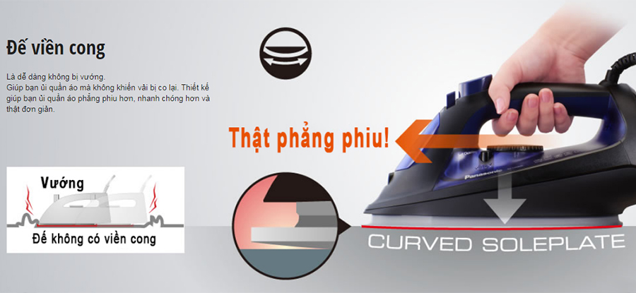 Ngoài ra, bản ủi Panasonic thích hợp với mọi loại vải, có vòng chỉnh nhiệt giúp lựa chọn được mức nhiệt độ phù hợp cho từng loại vải, đèn báo sẽ tự tắt khi đạt mức nhiệt cần thiết, bảo vệ quần áo không bị cháy xém do gặp phải nhiệt độ quá cao. Nổi bật hơn là có cấu tạo các hạt hơi nước siêu nhỏ bao phủ diện tích tích lớn, hiệu quả trong việc loại bỏ các nếp nhăn trên các loại vải tự nhiên như lanh và cotton, không cần phải thay đổi giữa chế độ ủi và phun nước.