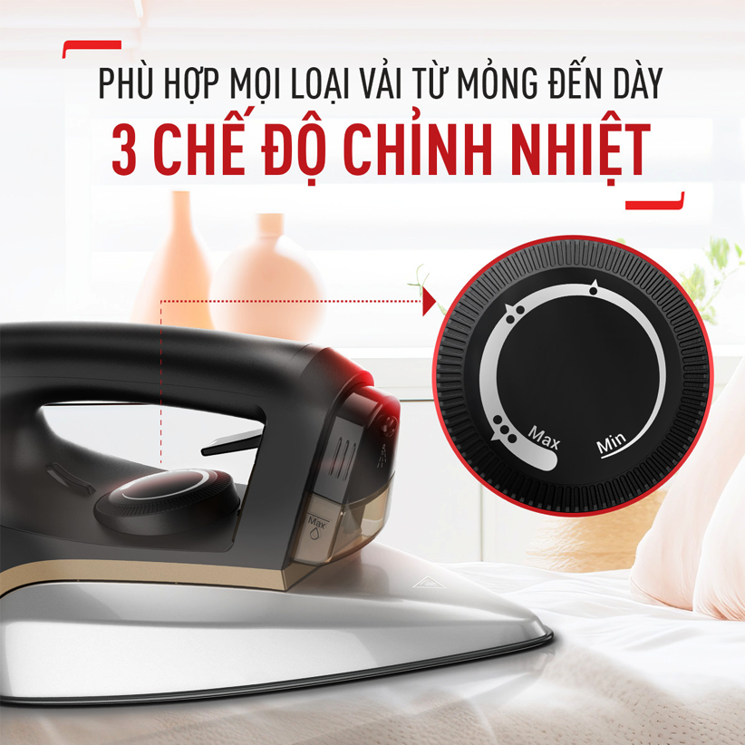 Đặc điểm nổi bật - Chế độ điều chỉnh nhiệt độ linh hoạt và tiện dụng - Bề mặt bàn là chống dính, trượt êm trên mọi loại vải - Thiết kế mũi nhọn và