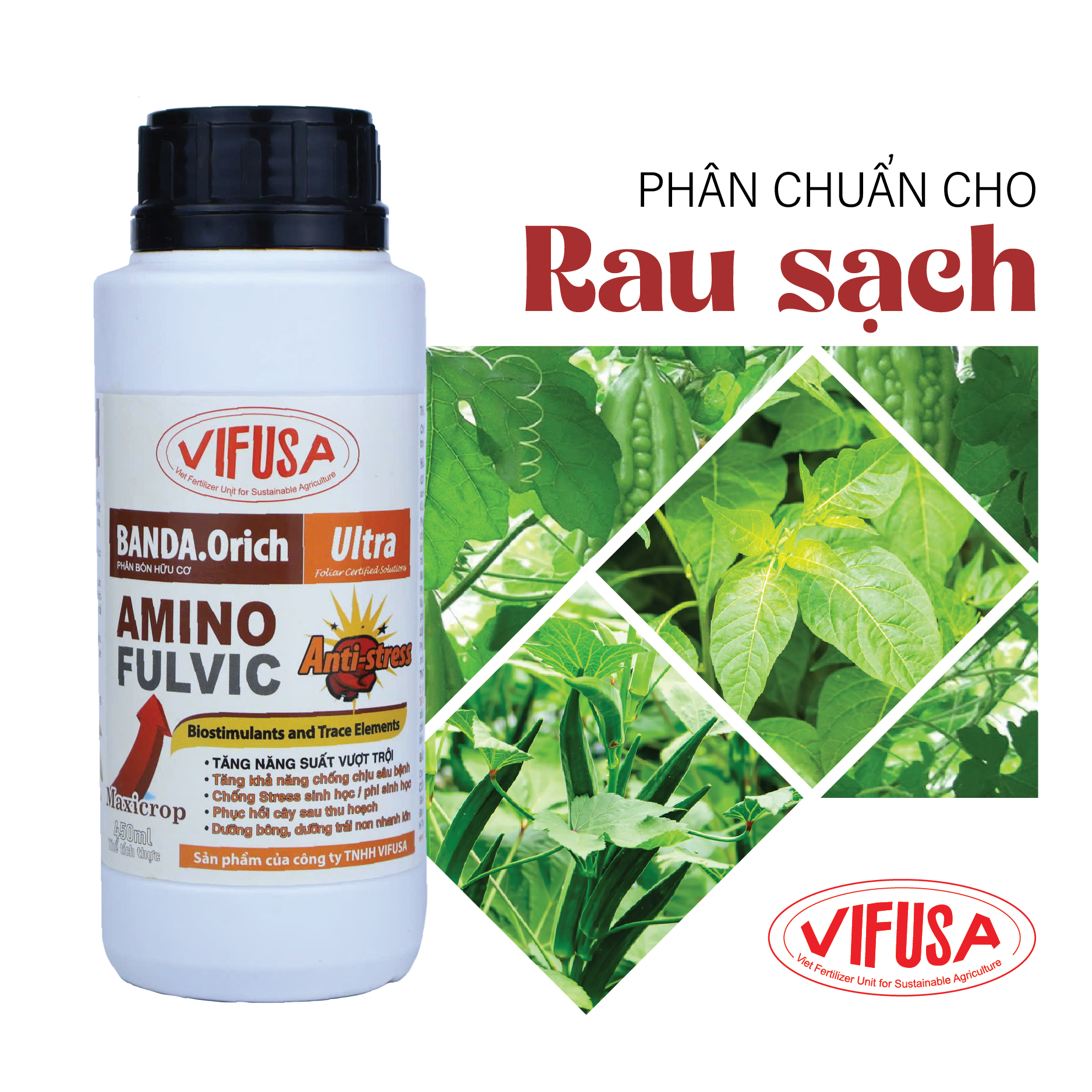 BANDA.Orich Ultra chứa hàm lượng 40% Acid Amin giúp thúc đẩy tăng cường, sức sống và năng suất cây trồng.