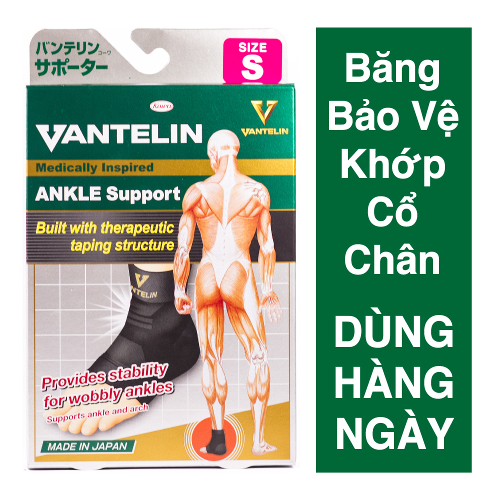 Mua tại TiktokBăng bảo vệ cổ chân Vantelin được làm từ chất liệu vải dệt Lycra co giãn mang lại cảm giác thoải mái khi mang, bao xung quanh cổ chân tránh lệch khớp cổ chân khi đi đứng, tham gia thể thao vô cùng hiệu quả. Đai bảo vệ cổ chân Vantelin được MEDIFA nhập khẩu chính hãng từ Nhật Bản. Khi băng đai bảo vệ cổ chân Vantelin thì bạn có thể mang giày cũ bình thường, không tăng kích thước size giày, dễ chịu khi đeo đai hàng ngày và có thể giặt. ĐẶC ĐIỂM NỔI BẬT: