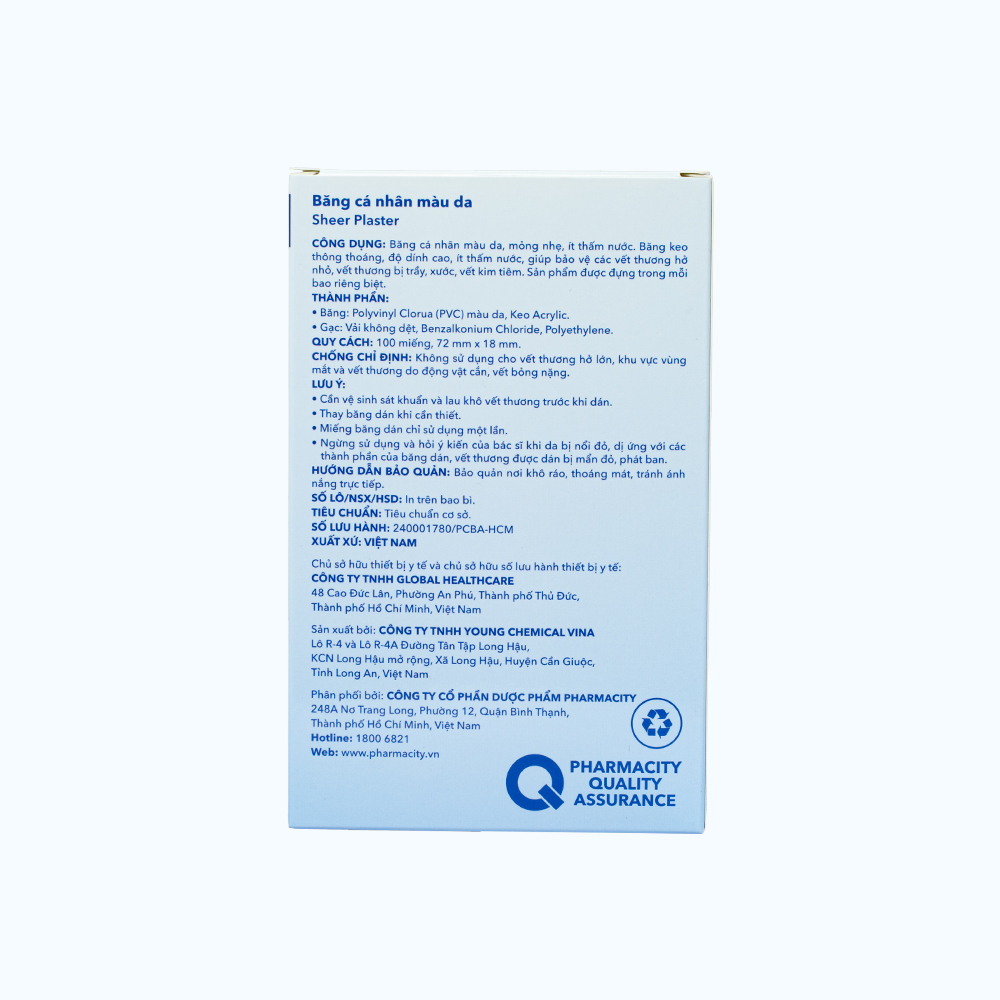 Thành phần Băng: Polyvinyl Chloride, màu da Gạc: vải không dệt màu trắng Được chỉ định trong mỗi bao Công dụng Băng cá nhân màu da với thành phần từ vải không dệt, băng keo