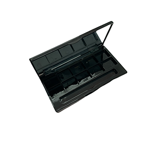 Chất liệu: Nhựa đen bóng sang trọng. Kích thước bao gồm nắp (DxRxC): 12 x 6 x 1.3 cm Kích thước ô chia: 2cm Vui lòng cho phép sai số 1-3mm do đo lường thủ công. Cam kết hàng đúng mô tả, ảnh thật chụp tại shop