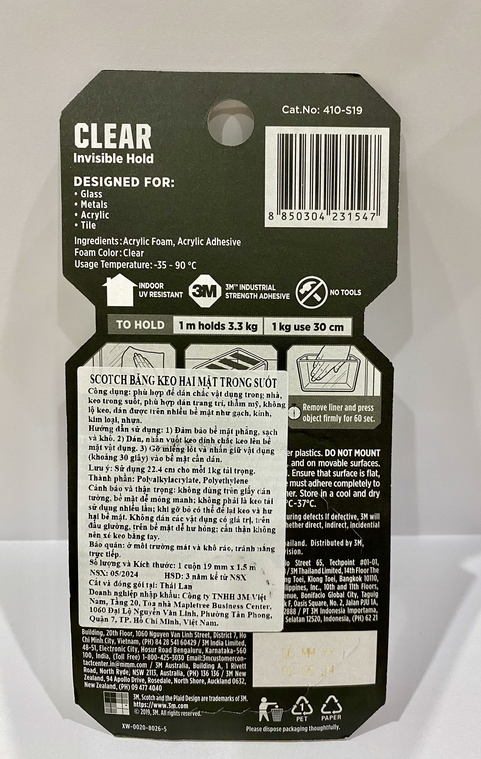 - Đảm bảo rằng bề mặt phẳng, nhẵn và có thể giữ được vật được gắn. Toàn bộ bề mặt băng keo phải dính hoàn toàn vào 2 mặt. Cẩn thận không để cắt vào bàn tay/ngón tay khi kéo băng ra quá nhiều. Để nơi khô ráo, thoáng mát. Nhiệt độ bảo quản từ 10°C đến 37°C. Tránh ánh nắng trực tiếp, môi trường độ ẩm cao