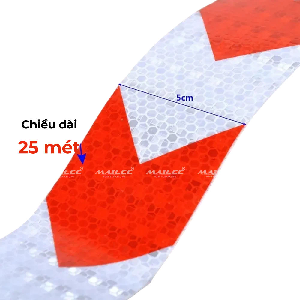 Cuộn Decan Phản Quang Dán Xe Tải Xe Rơ Mooc Mai Lee PQ-25DTS (25m x 5cm) Màu Đỏ Trắng Sọc Chéo, An Toàn Ban Đêm, Chất liệu PVC chống thấm nước - Decal phản quang