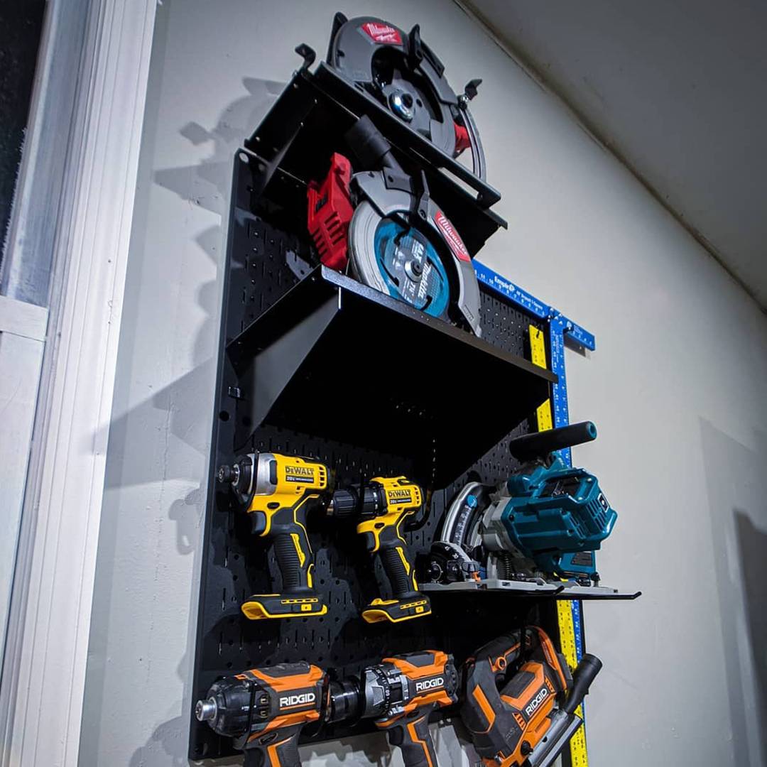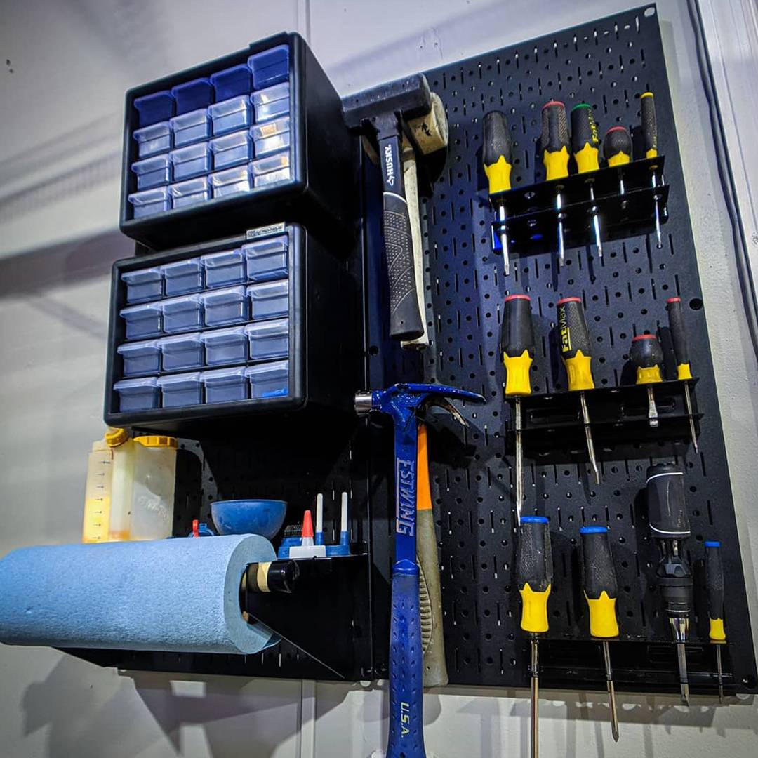 - Bảng treo dụng cụ Pegboard tổ chức lưu trữ thông minh và trực quan các dụng cụ cầm tay (tools) như: búa, máy khoan, máy cắt,…