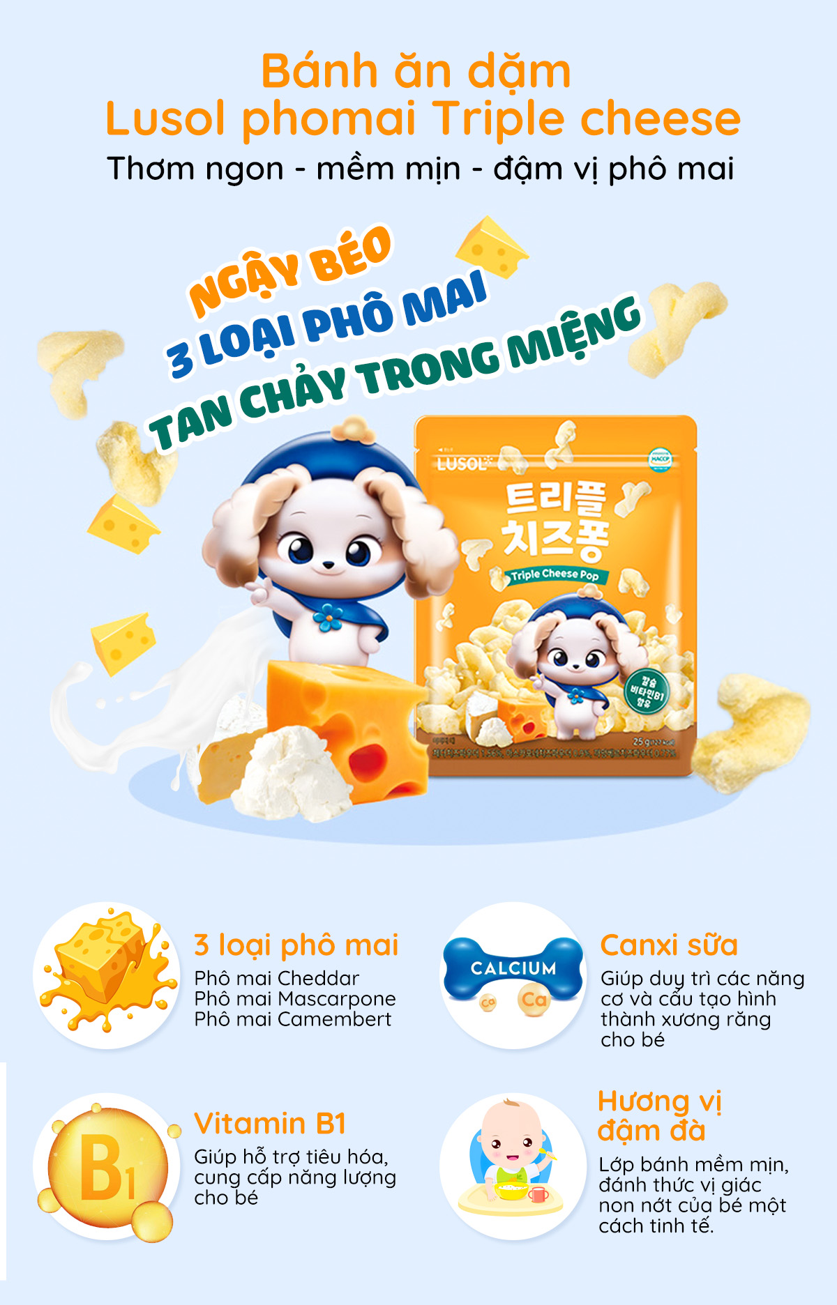 ✨Bánh ăn dặm Lusol vị sữa chua chuối và phô mai Triple Cheese Lusol cho bé từ 12 tháng
