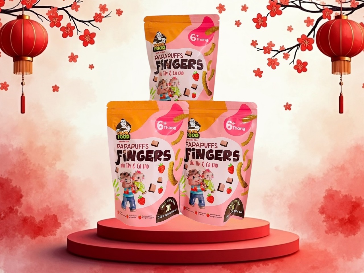 1. Tên sản phẩm: Bánh ăn dặm PAPAPUFFS FINGERS - BÍ ĐỎ VÀ KHOAI LANG TÍM . 2. Thành phần: Được sản xuất từ 100% Nguyên Liệu Hữu Cơ - Gồm gạo lứt hữu cơ,