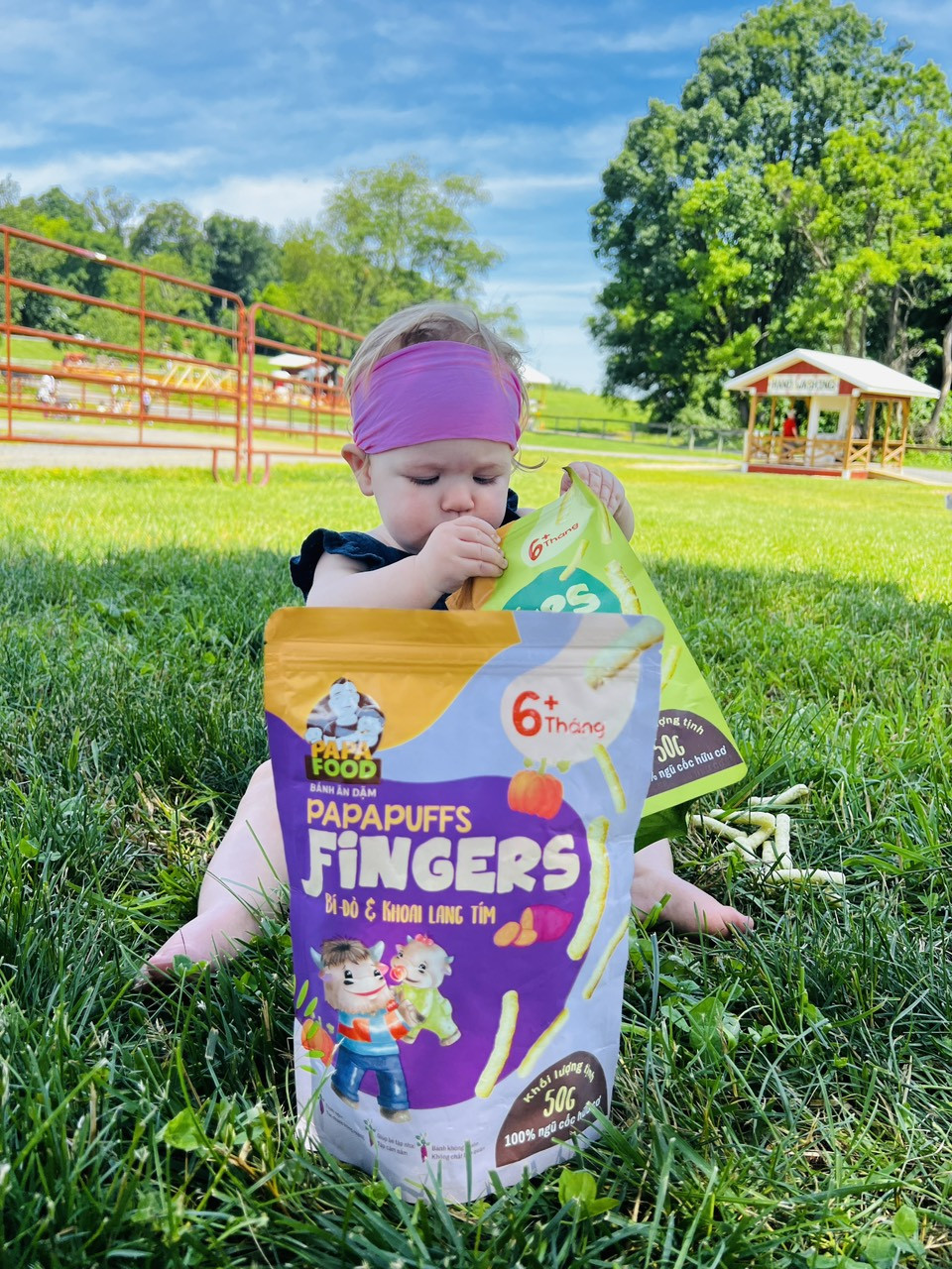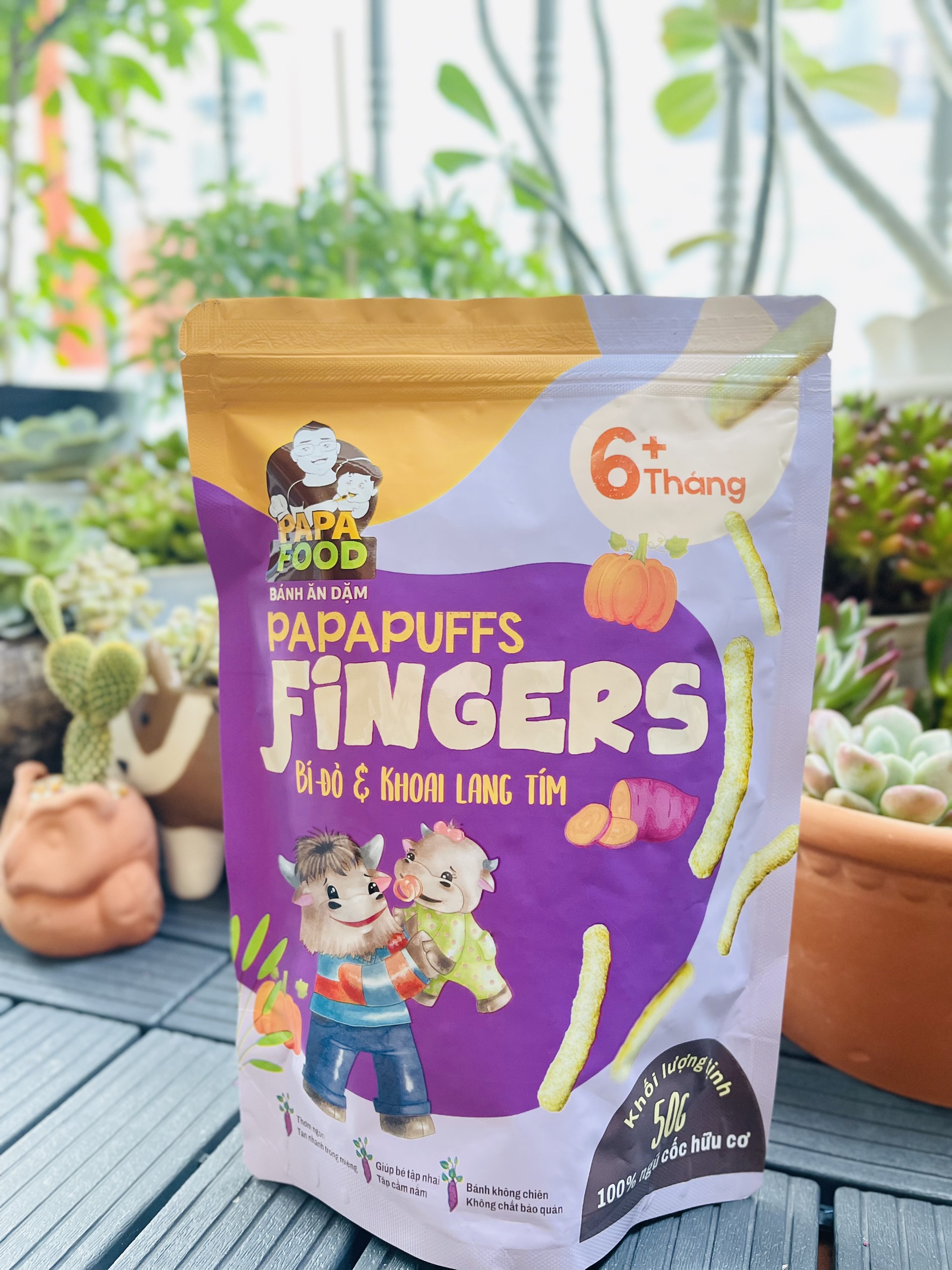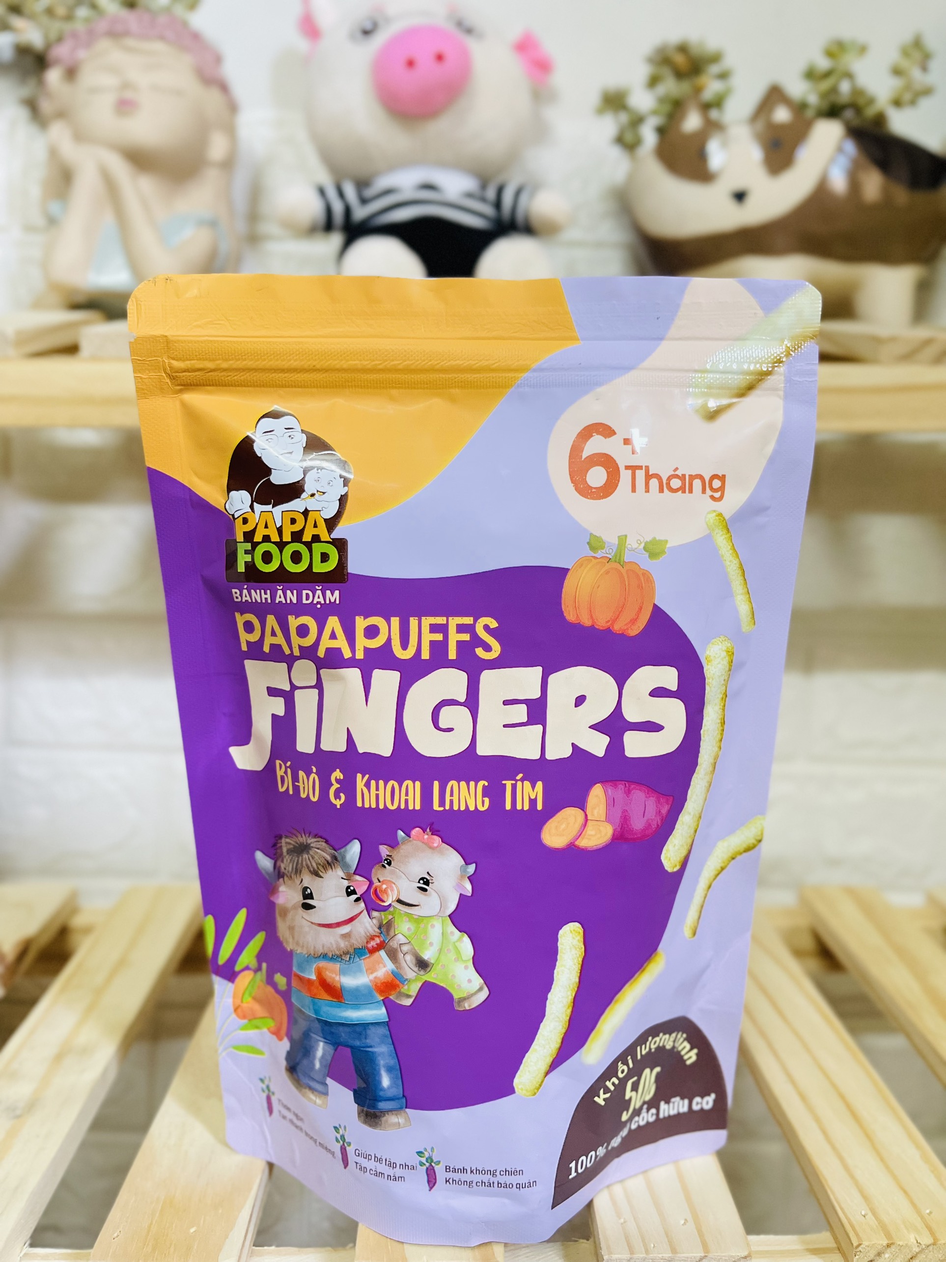 - Tên sản phẩm: Bánh ăn dặm PAPAPUFFS FINGERS - BÍ ĐỎ VÀ KHOAI LANG TÍM .
