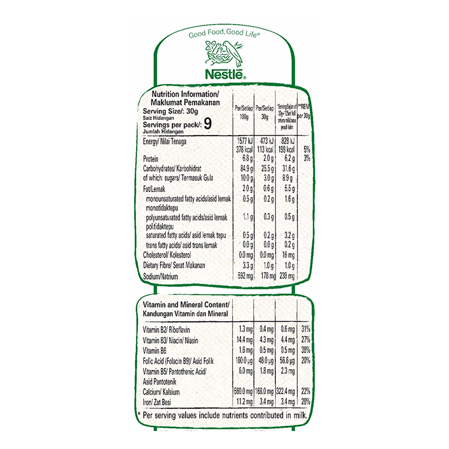 Được bổ sung thêm 10 vitamin và khoáng chất thiết yếu, Bánh Ăn Sáng Nestle Cflakes (275g) cung cấp nguồn dinh dưỡng cân đối cho cả gia đình. Sản phẩm cung cấp 25% mức khuyến nghị hàng ngày (RDA) của các vitamin và khoáng chất trong mỗi khẩu phần, cho gia đình bạn bắt đầu ngày mới khỏe mạnh và hứng khởi hơn.