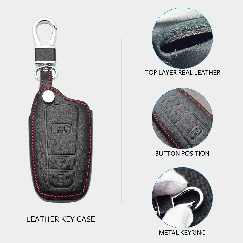 - Chất liệu: Da nappa - Dòng xe sử dụng: TOYOTA - Trọn bộ sản phẩm : bao da chìa khóa và móc khóa - NSX : Việt Nam Chi tiết sản phẩm: + Chất
