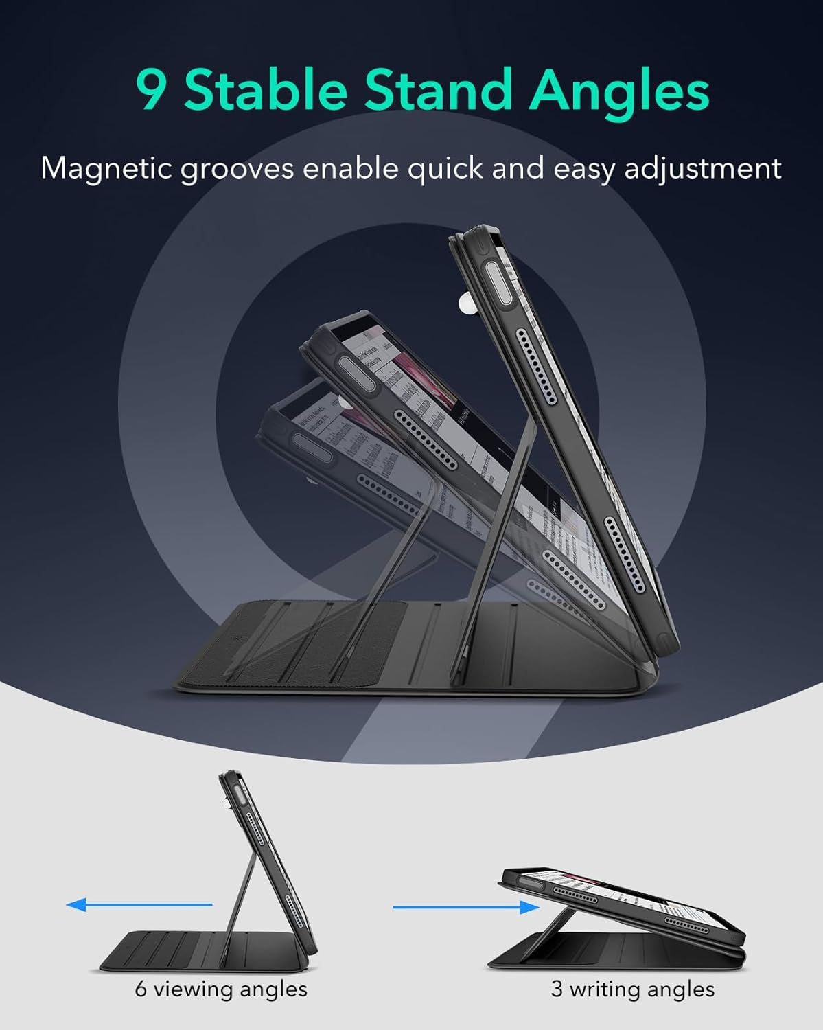 Khả năng tương thích: chỉ dành cho iPad Air 5 2022 / iPad Air 4 2020 10.9 inch Chân đế siêu ổn định: giá đỡ rộng có khóa từ tính vào các rãnh ở