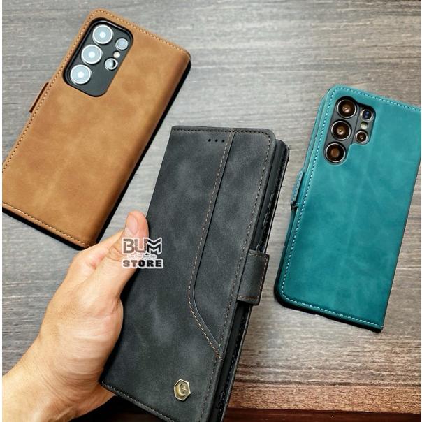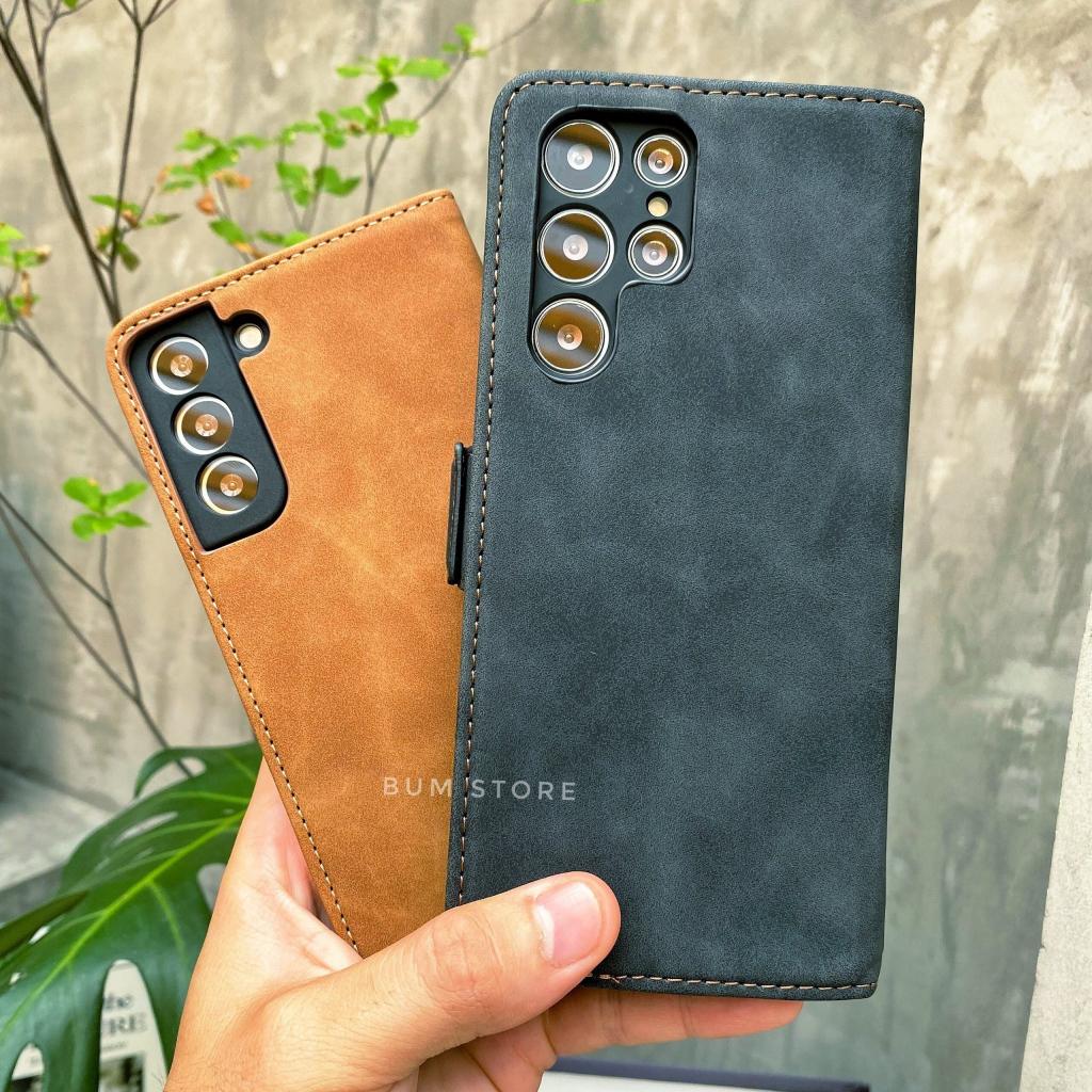 Ốp Lưng Da Lộn Có Ngăn Thẻ ATM Cao Cấp Samsung S24 Ultra / S23 Ultra / S23 PLus / S22 Ultra / S22 Plus / Note 20 Ultra - Chất liệu : cao su