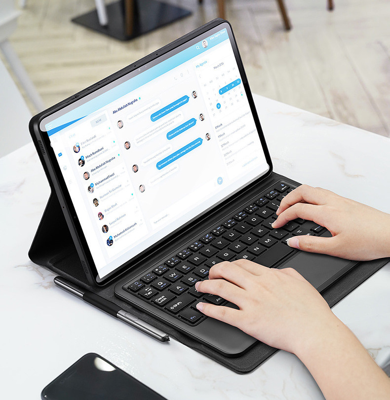 Bao da kèm bàn phím chính hãng Dux Ducis có bàn di chuột TrackPad với chân đế có thể điều chỉnh, bàn phím có thể tháo rời và bàn di chuột thông minh để đánh máy, xem, đọc và vẽ, cho phép bạn tận hưởng trải nghiệm điều khiển linh hoạt hơn. Bao da kèm bàn phím chính hãng Dux Ducis có bàn di chuột TrackPad vừa khít với thân máy và với thiết kế trượt ống kính đã được cấp bằng sáng chế, nó cung cấp khả năng bảo vệ đáng tin cậy cho mặt trước, mặt sau, bốn góc và camera của thiết bị. Vẻ ngoài đơn giản và chất liệu vải PU tinh tế hòa quyện với tính thẩm mỹ của máy tính bảng, nơi nghệ thuật và công nghệ được tích hợp hoàn hảo