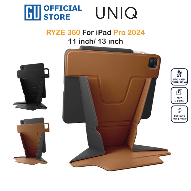 • Bao da UNIQ RYZE 360 Cho iPad Pro (2024) 11inch/ 13inch kiểu dáng đẹp với cơ chế gập thông minh.