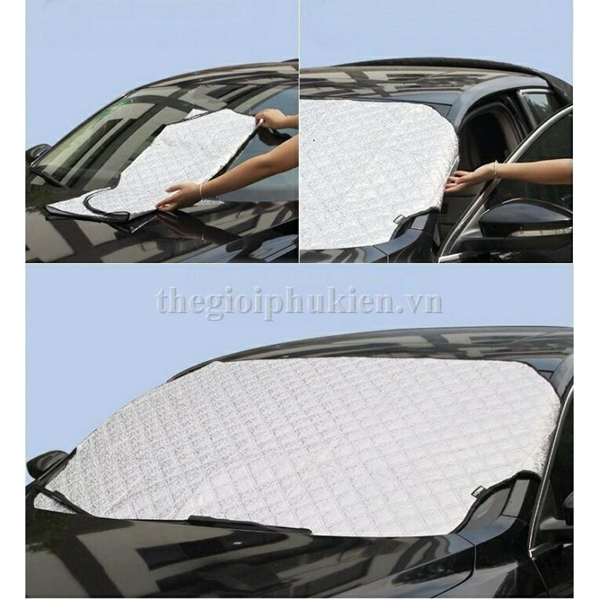 Bạt che nắng kính lái Ô tô, Xe hơi – Phủ bên ngoài Được thiết kế gồm 3 lớp với chất liệu dày dặn chắc chắn, có lớp tráng nhôm, chống ánh nắng mặt trời, chống bức xạ nhiệt khi bị chiếu nắng trực tiếp, làm giảm nhiệt độ trong xe, tránh các tác hại gây ra cho ô tô do nhiệt độ quá cao. Tấm chắn nắng ô tô gần như ôm khít phần kính chắn gió của xe, tai ngoe có thể kẹp vào hai bên cửa xe ô tô chắc chắn, chống bay khi trời nổi gió. Có thể xếp gọn để cất giữ trong ô tô, tiện lợi, không chiếm diện tích. Phù hợp với tất cả các dòng xe SUV, sedan, hatchback.
