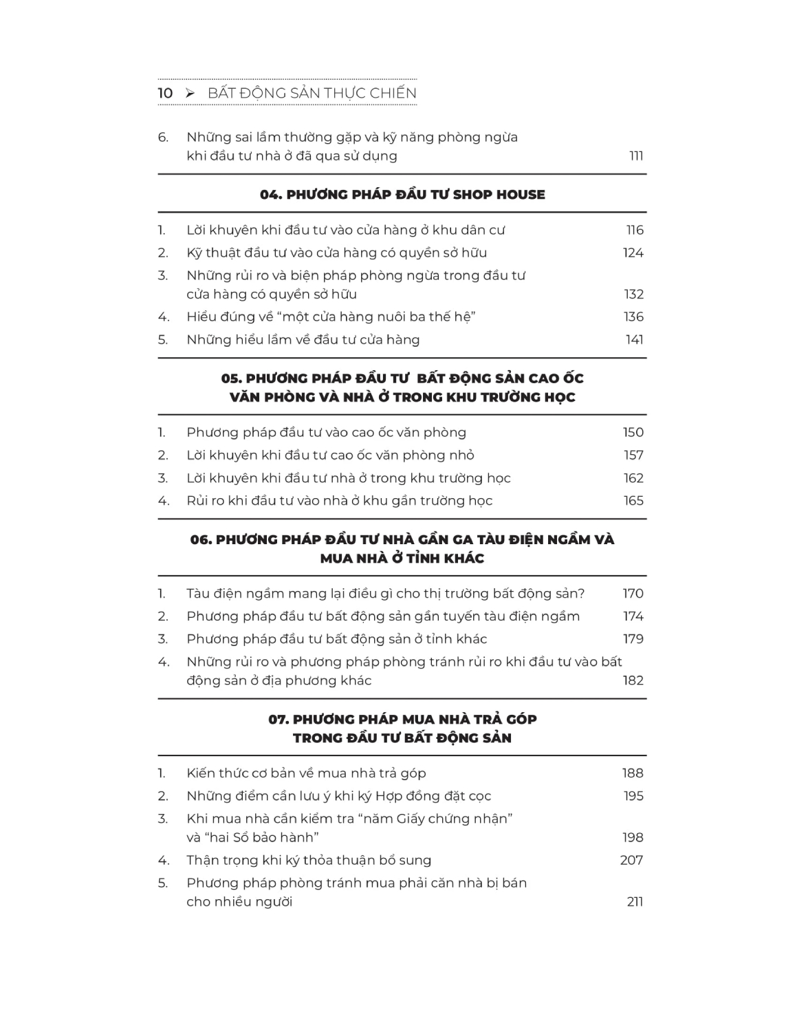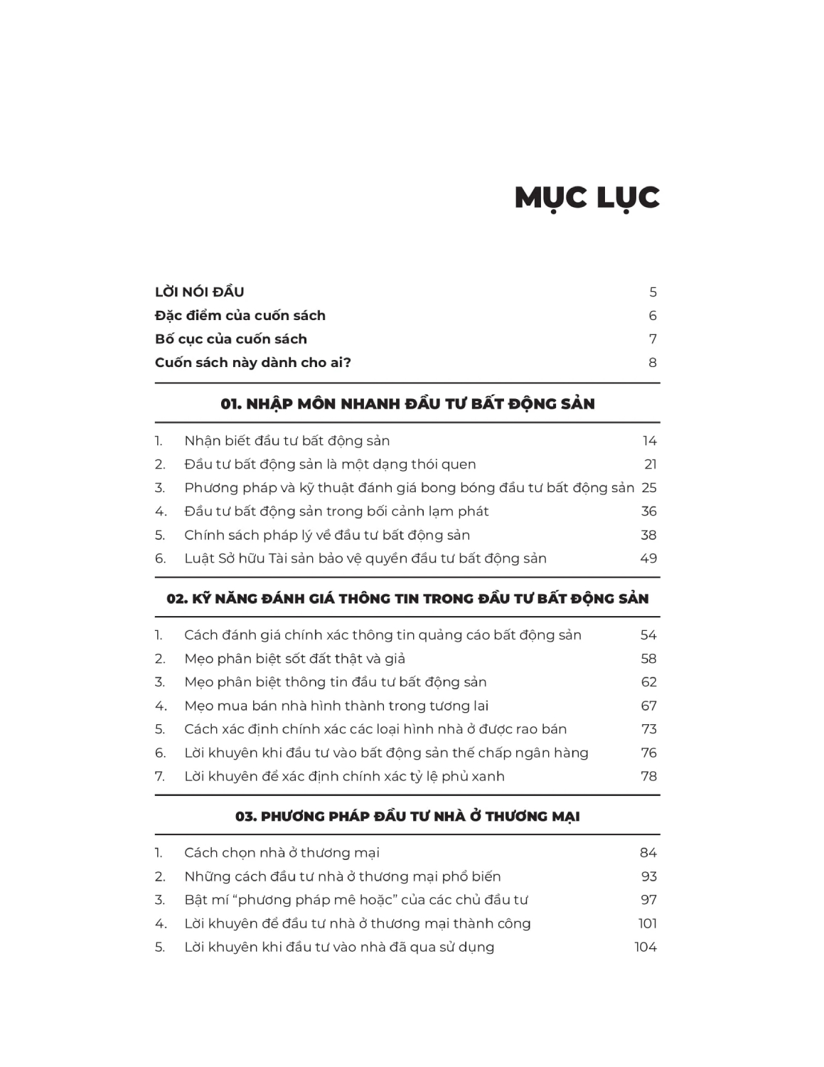 Vậy làm thế nào để mua được nhà nhằm ổn định cuộc sống? Làm sao để đầu tư vào bất động sản? Nên mua nhà ở thương mại, cửa hàng, tòa nhà văn phòng, hay nhà ở khu vực gần trường học, gần ga tàu điện ngầm, thậm chí ở vùng khác? Cần những kiến thức và phương pháp gì khi mua nhà, đất? Mua nhà, đất ở đâu, khi nào mua để có lãi? Cần biết kỹ thuật gì khi cho thuê nhà và đầu tư nhà đất mua đi bán lại?