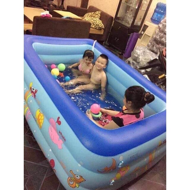 Hồ bơi thiết kế lớn có thể cho 3 bé cùng bơi Chất liệu pvc an toàn Đáy hồ bơm hơi ngồi êm ái Hồ cao 3 tầng