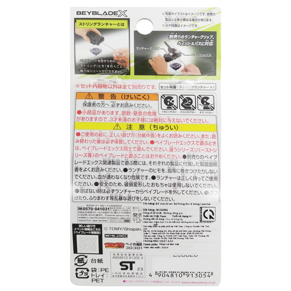 Bệ Phóng Con Quay BX-18 String Launcher - Beyblade X 913054 - Sản phẩm chỉ là bệ phóng, không có con quay đi kèm - Phù hợp cho trẻ từ 6 tuổi. - Chất liệu