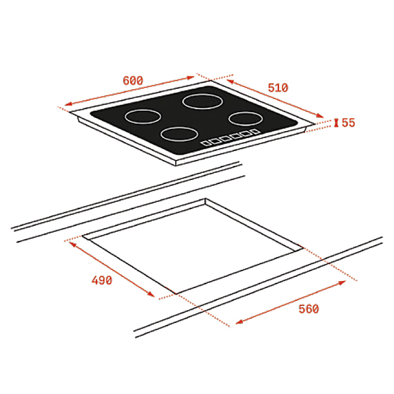 Thiết kế hiện đại, sang trọng • Kích thước 60cm nhỏ gọn, hình vuông tinh tế, gồm 03 vùng nấu tiện lợi, phù hợp với mọi không gian bếp. Tính năng thông minh, an toàn