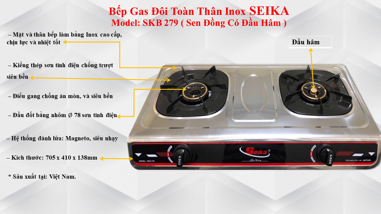 ✨Bếp Gas Đôi Toàn Thân Inox Seika SKB279 - Hàng Chính Hãng