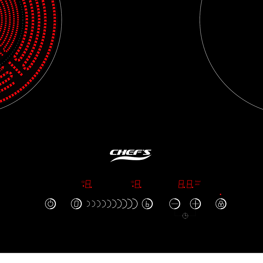 - Bếp Hỗn Hợp 02 Vùng Nấu Chef's EH-MIX330 sử dụng đa năng với bếp hỗn hợp EH-MIX330 - Mặt kính ceramic chịu nhiệt Schott Ceran vát cạnh – Germany - Mâm nhiệt EGO Hi-light,
