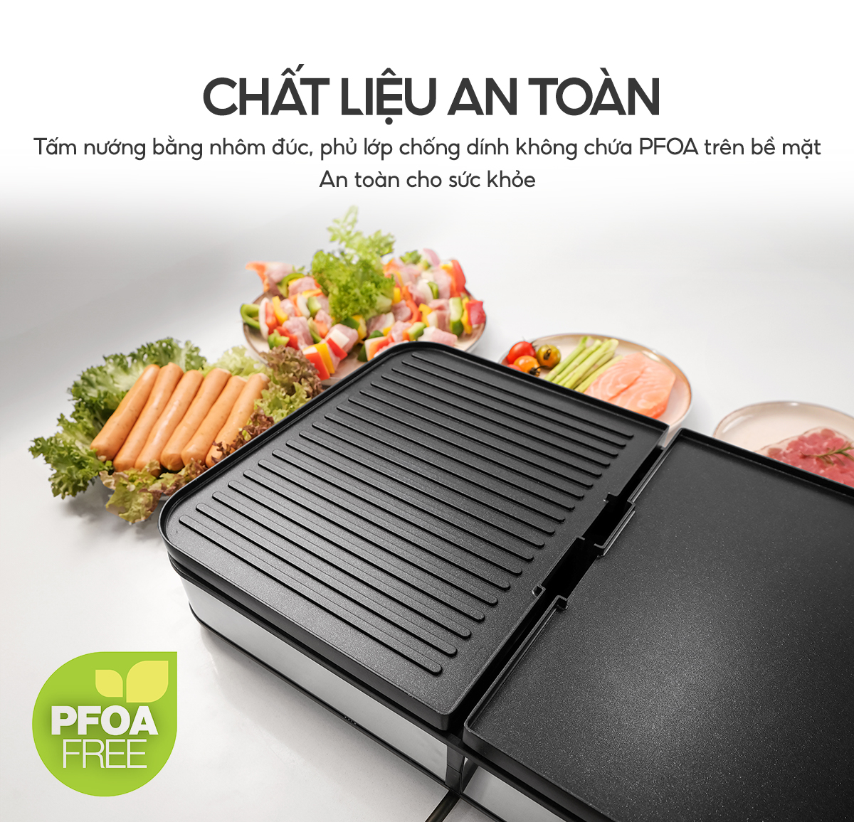 Đặc điểm nổi bật Bếp nướng không khói. Đại tiệc BBQ ngay tại nhà. Bếp nướng được đúc bằng nhôm nguyên chất 100% có độ bền cao. Bề mặt sơn chống dính cao cấp an toàn