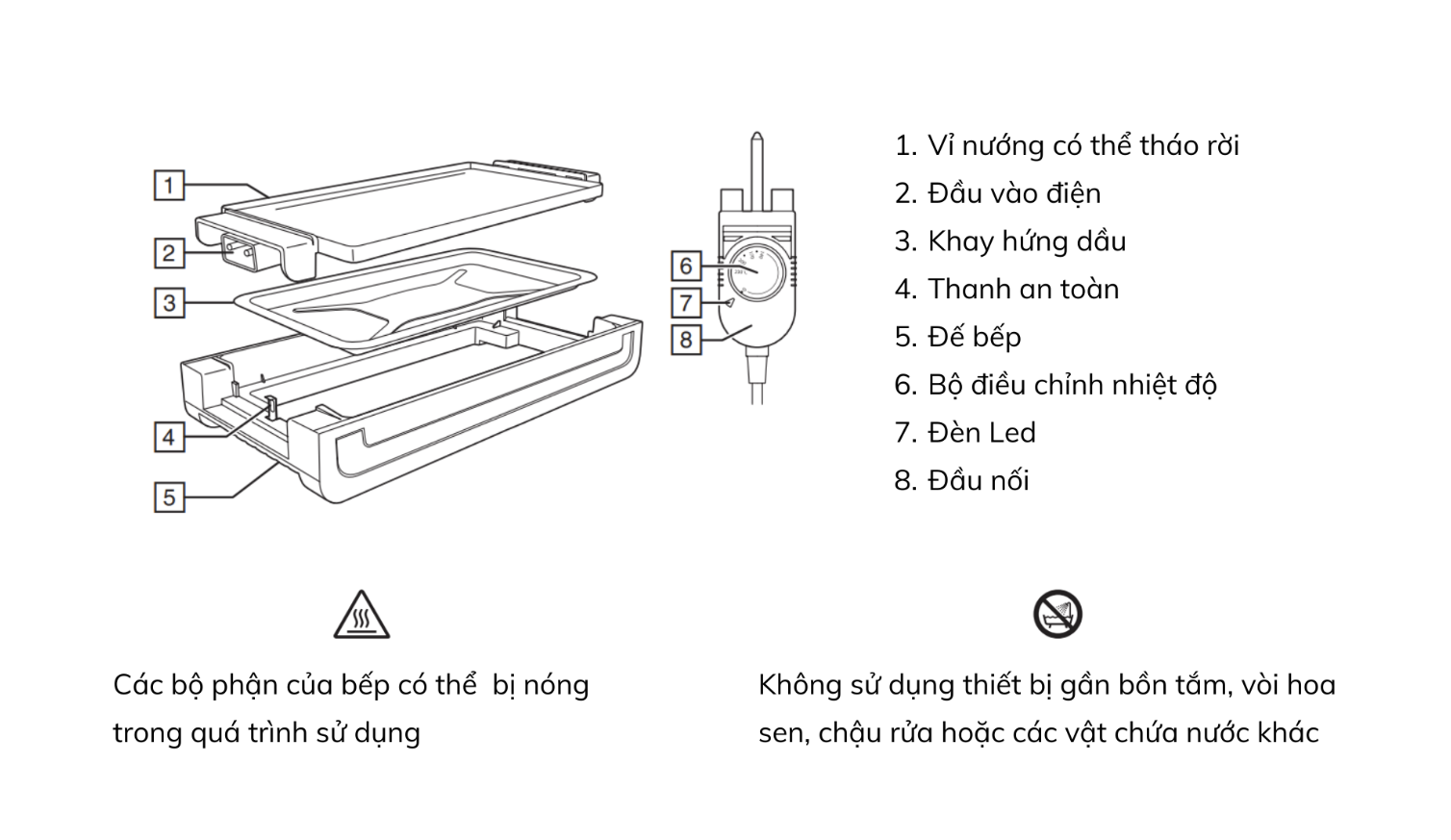 Kiểm soát nhiệt độ hiệu quả Vỉ nướng có cấu tạo với bộ phận sinh nhiệt bằng sợi đốt chống dính. Cùng với nút điều khiển nhiệt độ, người sử dụng có thể dễ dàng