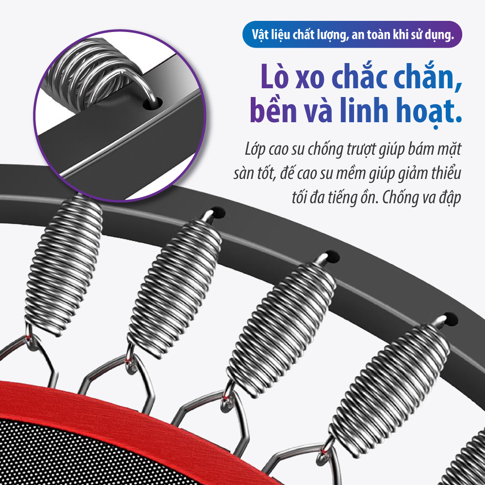 - Sàn nhún trampoline là loại bạt nhún lò xo trampoline 40 inch có đường kính là 1mx1m.