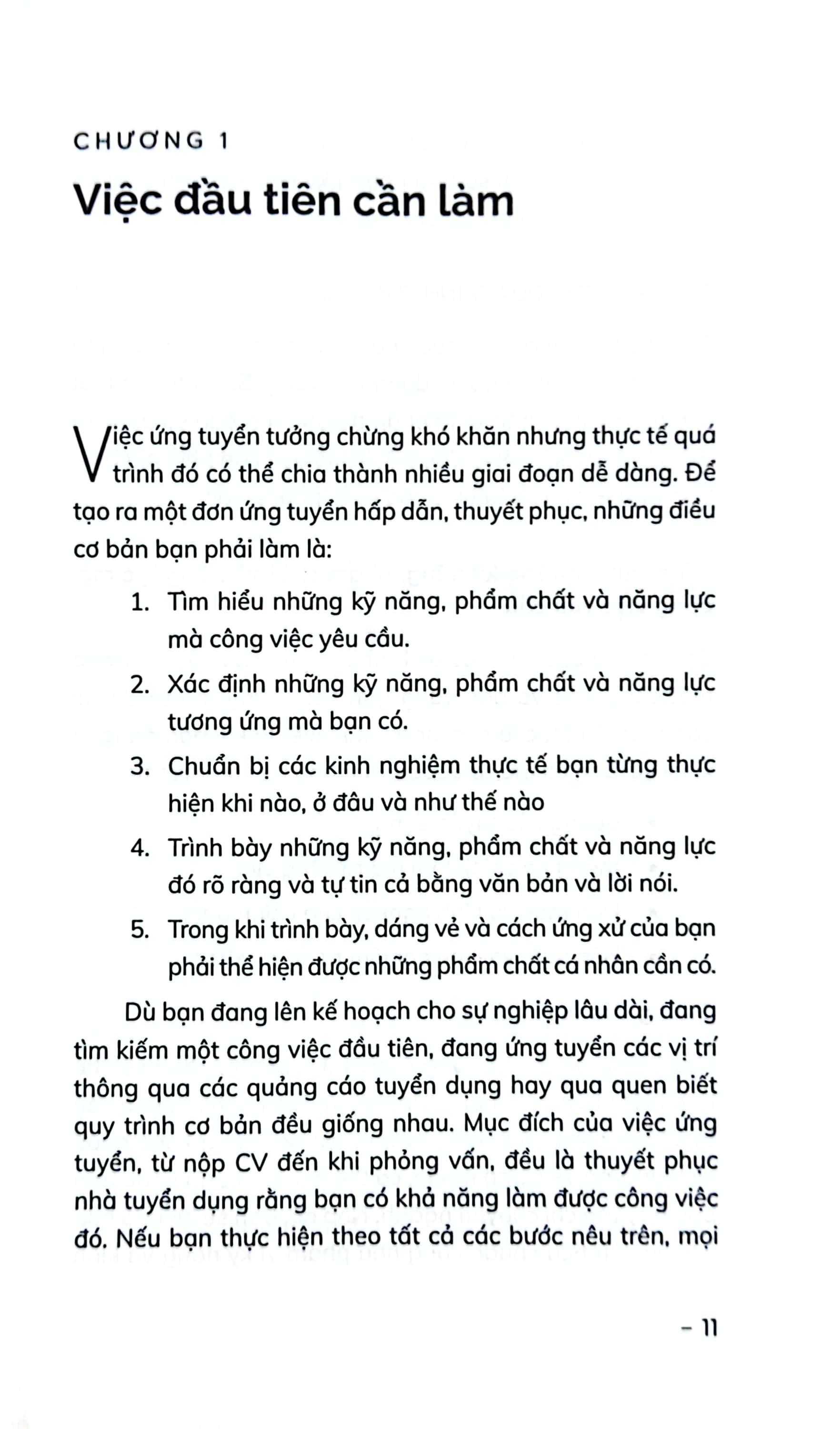 Cuốn sách này sẽ giúp bạn có được một công việc như mong muốn. Nó không trang bị các kỹ năng hay đào tạo về kỹ thuật bạn cần – đó là trách nhiệm của bạn, hơn nữa rất nhiều trường đại học và khóa học nghề có thể đáp ứng nhu cầu. Những gì cuốn sách mang lại cho bạn là các kỹ năng và kỹ thuật tìm việc giúp bạn giảm bớt căng thẳng khi tìm việc và đảm bảo đơn ứng tuyển của bạn nhận được phản hồi tích cực. Thông qua cuốn sách, bạn sẽ biết cách làm thế nào để:
