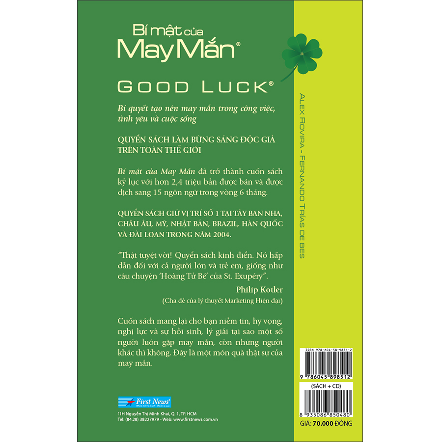 Nghiên cứu cuộc sống dưới góc nhìn của tâm lý học Alex Rovira và Fernando Trías de Bes đã phát hiện được “dấu chân của thần may mắn” mà ai cũng có thể tìm gặp. Cuốn sách của hai ông Good Luck – Bí mật của may mắn là tập hợp những câu chuyện lạ thường hướng đến một bài học vô cùng giá trị về cuộc sống: Sự may mắn không xuất hiện ngẫu nhiên trong hành trình cuộc sống chúng ta; chính chúng ta phải tìm và tạo ra những điều kiện để may mắn tìm đến với mình.