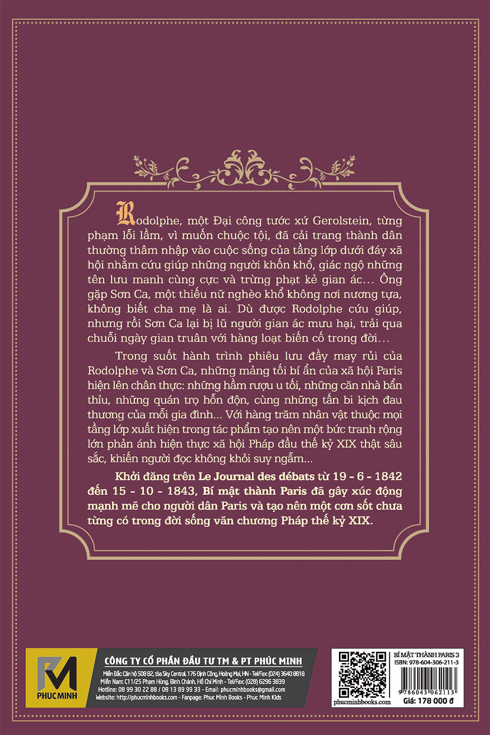 Với ấn bản mới này, không chỉ hiệu đính, Phuc Minh Books còn bổ sung thêm 185 tranh minh họa khắc kẽm, từng được sử dụng trong phiên bản Les Mystères de Paris (Bí mật thành Paris), do NXB J. Rouff xuất bản năm 1885, nhằm giúp độc giả có cái nhìn chân thực nhất về con người và xã hội Paris thế kỷ XIX.