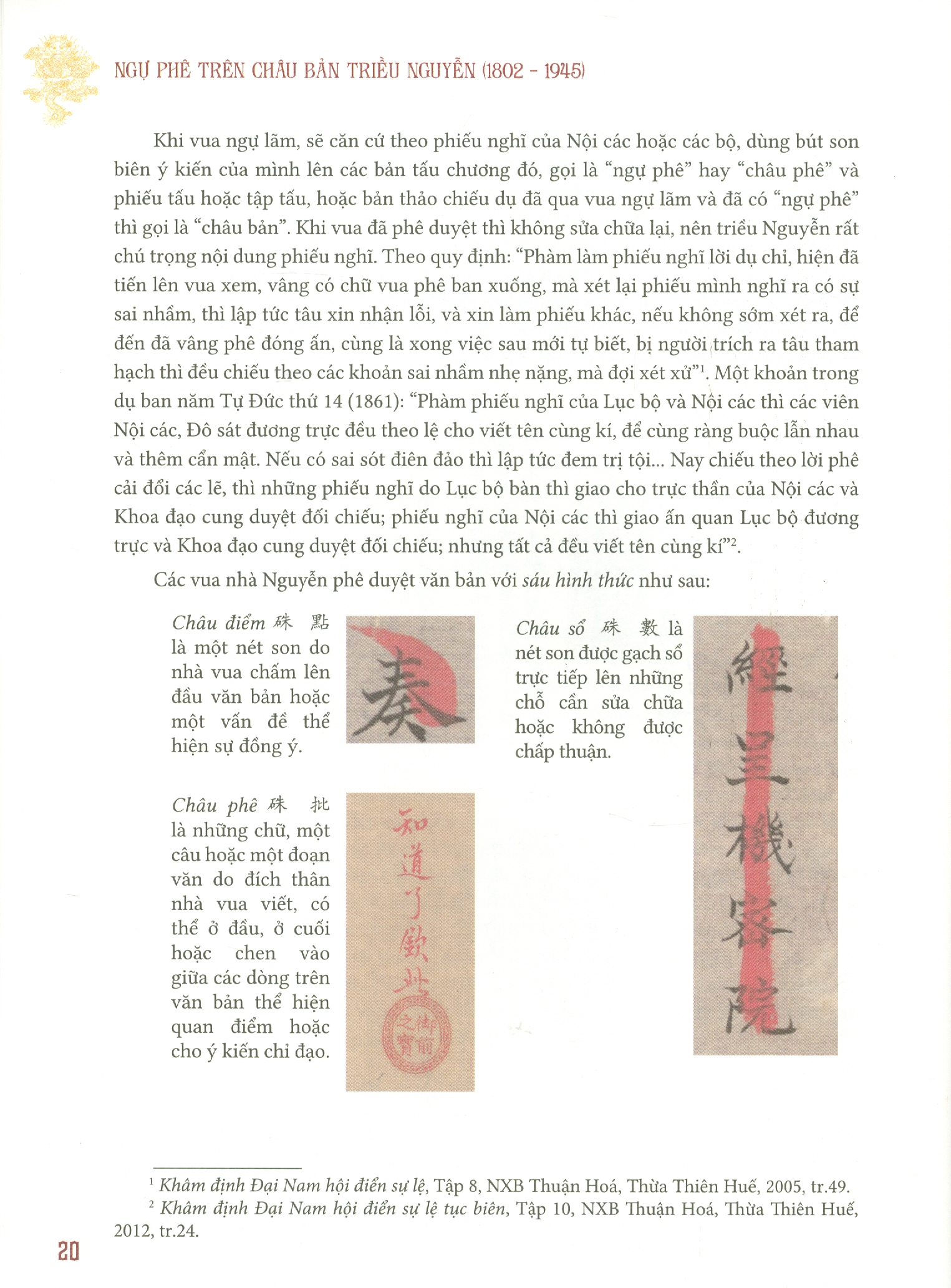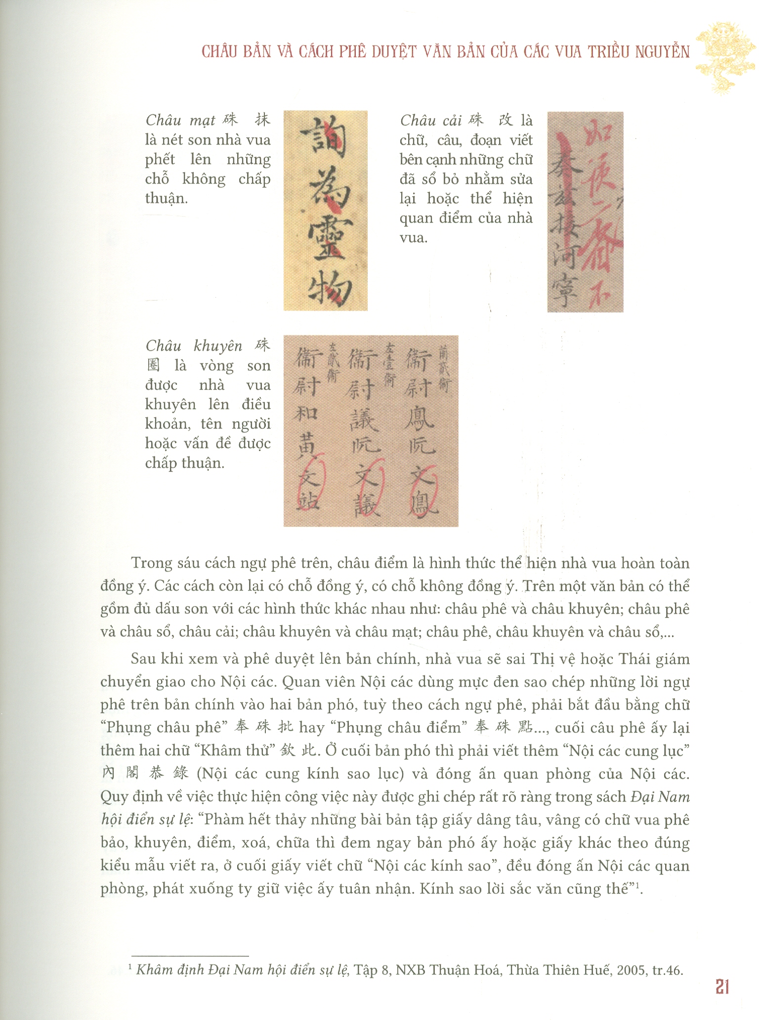 – Phần thứ hai, giới thiệu Ngự phê của các vua triều Nguyễn.