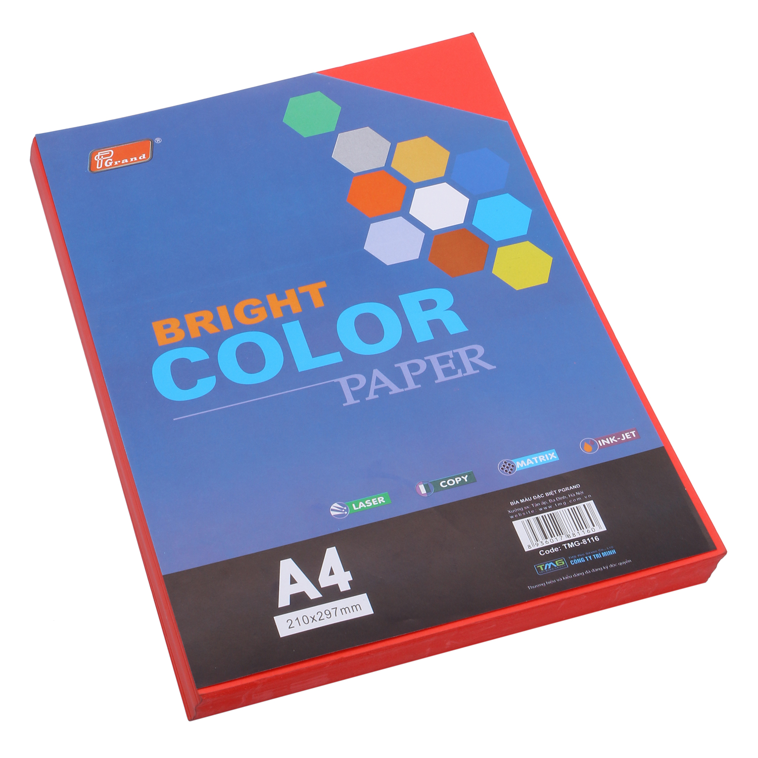 Bìa Giấy A4 Đậm ĐL - Đỏ có thể sử dụng với nhiều mục đích khác nhau như làm bìa các loại hồ sơ, giấy tờ, bài luận,… hoặc cắt dán để trang trí. Sản phẩm có màu sắc bắt mắt, giúp không gian nơi học tập và làm việc trở nên sinh động và vui tươi hơn. Bìa giấy được sản xuất từ chất liệu cao cấp, không độc hại, an toàn cho người sử dụng.