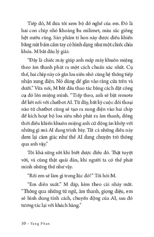 Mua tại TiktokBiến Thể Của Cô Đơn Lấy bối cảnh giả tưởng, sách khắc họa những thân phận nhỏ bé, cô đơn trong thời đại công nghệ số: Về người phụ nữ chỉ trò chuyện với trí tuệ nhân tạo, về cuộc tình oái oăm giữa một đại gia giàu có và rô bốt, về thí nghiệm cho phép lưu trữ ký ức người chết trong USB, Những người này đều lạm dụng công nghệ với mục đích khác nhau, nhưng tất cả dần nhận ra rằng: niềm tin khoa học có thể giải quyết mọi vấn đề chỉ là một ảo tưởng ngây thơ của con người. Sách đặt ra câu hỏi về bản sắc và sự kết nối. Trong một thế giới phẳng, khi bất kỳ thứ gì cũng có thể sao chép hoàn hảo, làm sao để mỗi người giữ được bản sắc riêng? Và liệu rằng, chúng ta đang sống trong thời đại có thể kết nối với tất cả trừ chính mình? “Trong thiên niên kỷ thứ 2, lịch sử loài người đã có những biến động mạnh mẽ. Đầu tiên là sự xâm lăng và thống trị của công nghệ tiên tiến. Bằng tri thức của mình, loài người đã phát minh ra nhiều công trình vĩ đại, từ điện thoại di động, internet, đỉnh điểm là trí tuệ nhân tạo. Chỉ sau bốn trăm năm, hàng loạt rô bốt có trí thông minh đã ra đời. Bên cạnh đó, con người cũng tìm cách chống lại các quy luật tự nhiên bằng cách lưu trữ toàn bộ ký ức vào máy tính với hy vọng sẽ bất tử trong hình hài khác. Tuy nhiên, dù cố gắng thế nào, thì giống loài thông minh này vẫn phải chịu sự chi phối mạnh mẽ từ tự nhiên.” Yang Phan là tác giả đoạt giải Nhì (không có giải Nhất) cuộc thi sáng tác Văn học Tuổi 20 lần 7 với tác phẩm Vụn ký ức. Các tác phẩm khác đã xuất bản: Đánh Đổi (2015); Bẫy (2015); Ngày buồn sẽ tạm biệt ta mà đi (2019); Đêm đã sâu, sao em chưa tắt đèn (2022); Thế giới xấu xí, với anh em vẫn đẹp (2023).