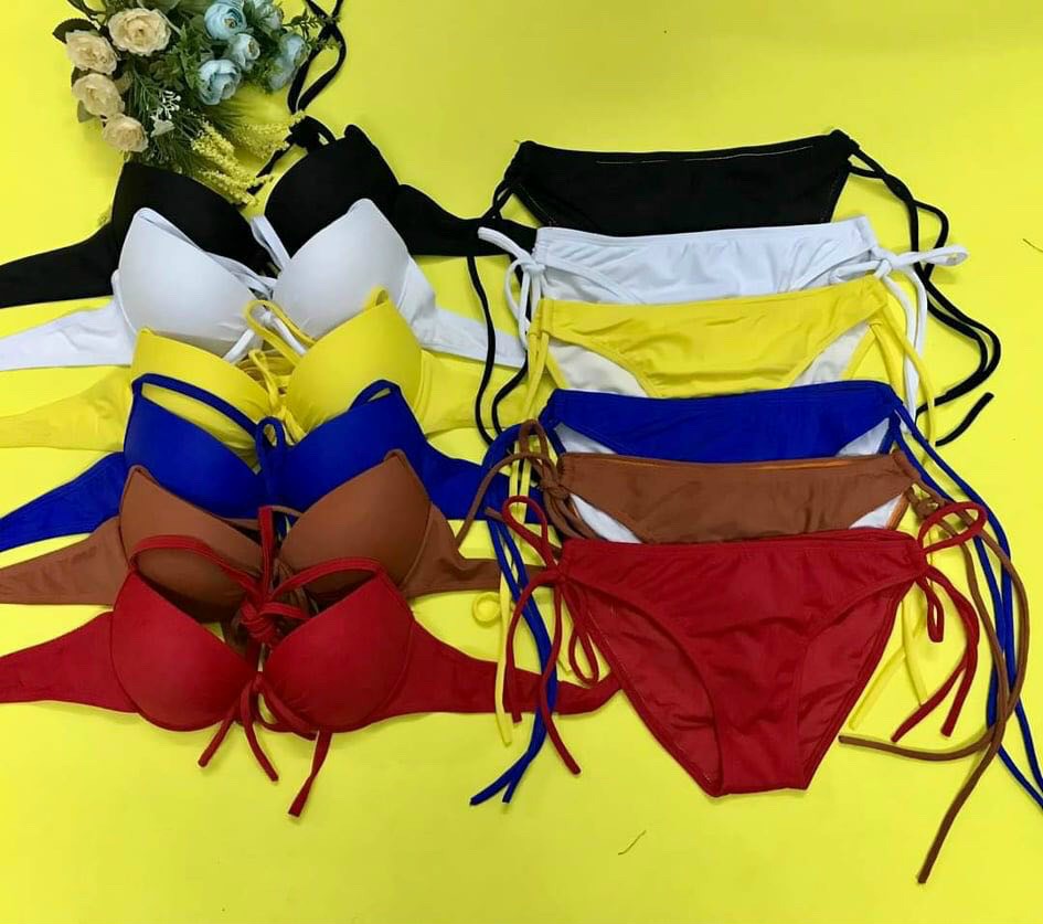 BIKINI 2 MẢNH TAM GIÁC CÓ GỌNG SEXY Chất liệu thun Poly Sản Xuất tại Việt Nam Size: M dưới 55kg(freesize) Ưu điểm của loại vải này là bề mặt nhẹ, thoáng, căng mịn. Chúng