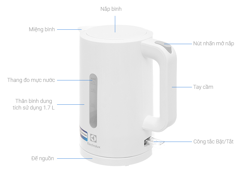 Bình đun siêu tốc Electrolux 1.7 lít EEK3505 - Hàng chính hãng