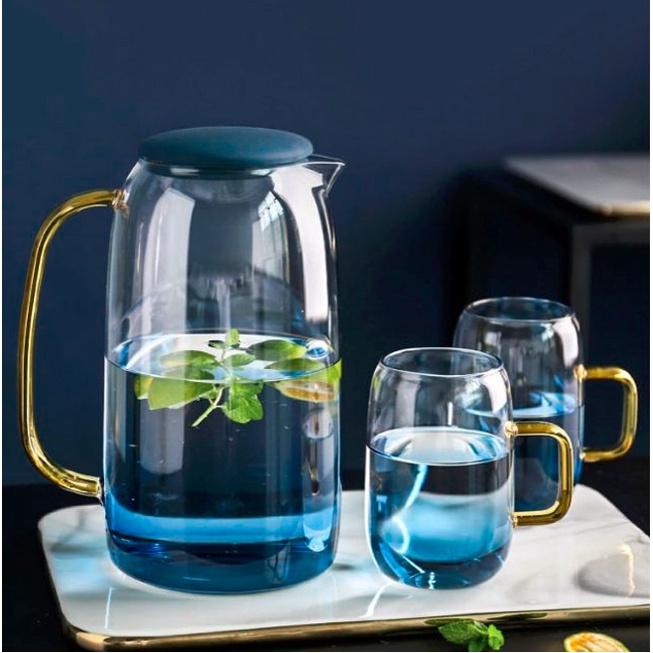 ✨Bình đựng nước thủy tinh kèm 6 cốc màu xanh nước biển
