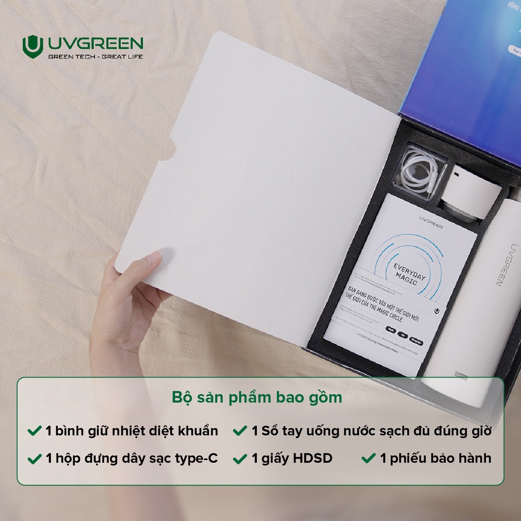 Bình Giữ Nhiệt Diệt Khuẩn UVC LED UVGREEN 500ml - Công Nghệ Từ Mỹ, Diệt Khuẩn 99,9% Trong 30s, Chất Liệu Inox Không Gỉ, Bảo Hành 12 Tháng