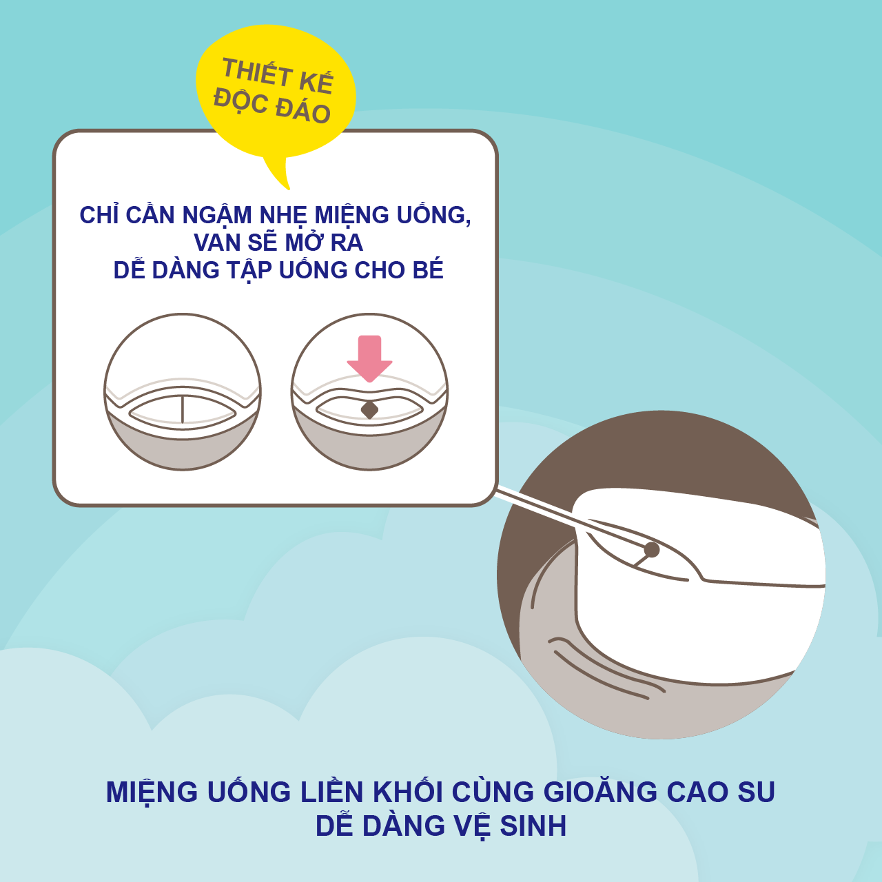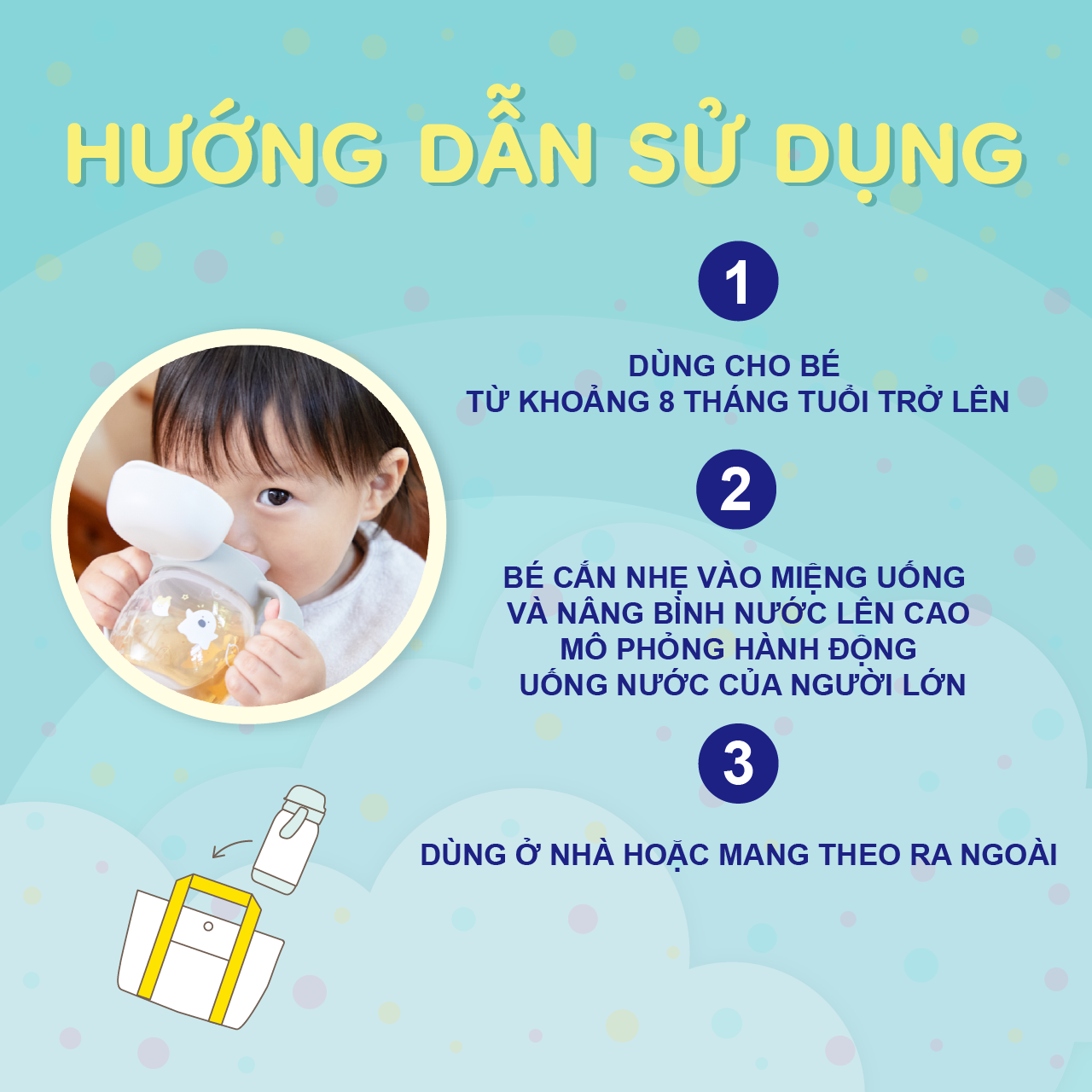 Đặc điểm sản phẩm - Nhựa PP an toàn, không chứa BPA, chịu nhiệt 120 độ C - Thiết kế phù hợp, vừa khuôn miệng - Tay cầm an toàn, chắc chắn - Quy cách: