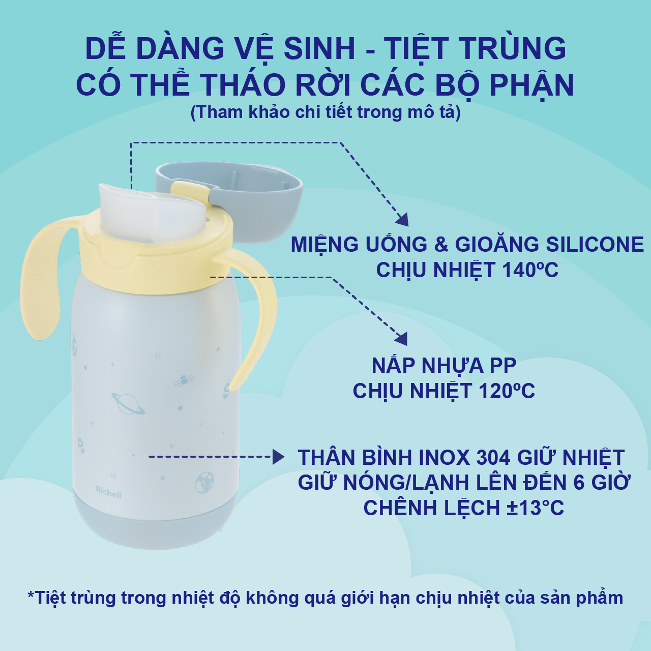 Bình giữ nhiệt có ống hút RICHELL Nhật TLI | Baby Độ tuổi sử dụng: Từ khoảng 7 tháng tuổi trở lên (em bé đã biết phản xạ hút, mới biết hút, em bé