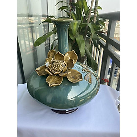 Mua tại TiktokBình hút tài lộc sứ Bát Tràng cao cấp, dáng cổ cao, bụng dẹt, men xanh hỏa biến với nước men căng bóng, sáng mịn cùng với họa tiết hoa sen đắp nổi cầu kỳ, được thực hiện thủ công 100% bởi bàn tay của các nghệ nhân lành nghề. Sản phẩm được trưng bày tại phòng khách, phòng làm việc, văn phòng, cửa hà vừa có tác dụng thu hút tài lộc đến cho chủ nhân vừa có tác dụng trưng các loại hoa theo mùa, giúp trang trí không gian trở nên ấn tượng, thu hút, mới mẻ, hấp dẫn. Bình hút tài lộc cao 35cm, miệng bình 6cm, vòng bụng bình 87cm