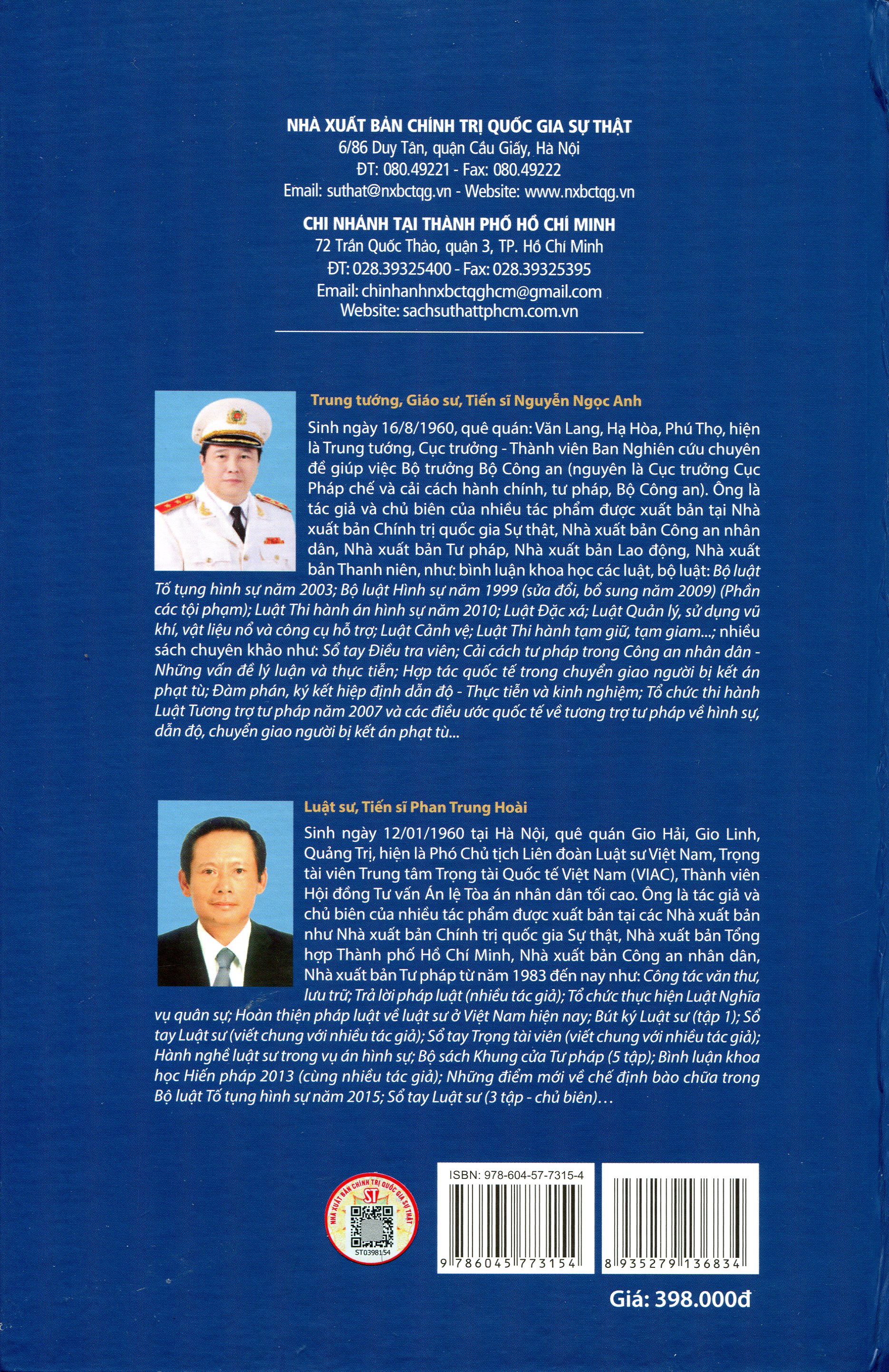 Từ một số kết quả nghiên cứu và sự trải nghiệm trên các cương vị công tác khác nhau, các tác giả đồng chủ biên đã tích cực tham gia và có nhiều đóng góp trong quá trình Ban soạn thảo và Tổ biên tập xây dựng dự thảo BLTTHS 2015 trình các cơ quan thẩm định và Quốc hội thông qua. Các tác giả đã cố gắng diễn giải một cách cụ thể nhưng cô đọng tinh thần và nội dung của từng Điều luật, giải quyết các tình huống phát sinh từ thực tiễn trong một quyển sách đầy đặn. Đây là một tác phẩm xuất bản không chỉ có giá trị về mặt khoa học pháp lý, mà còn mang tính thực tiễn cao, giúp các nhà nghiên cứu, các chủ thể tiến hành và tham gia tố tụng, các cán bộ trong các cơ quan pháp luật và các sinh viên ngành luật có thể tham khảo trong quá trình công tác, học tập của mình.