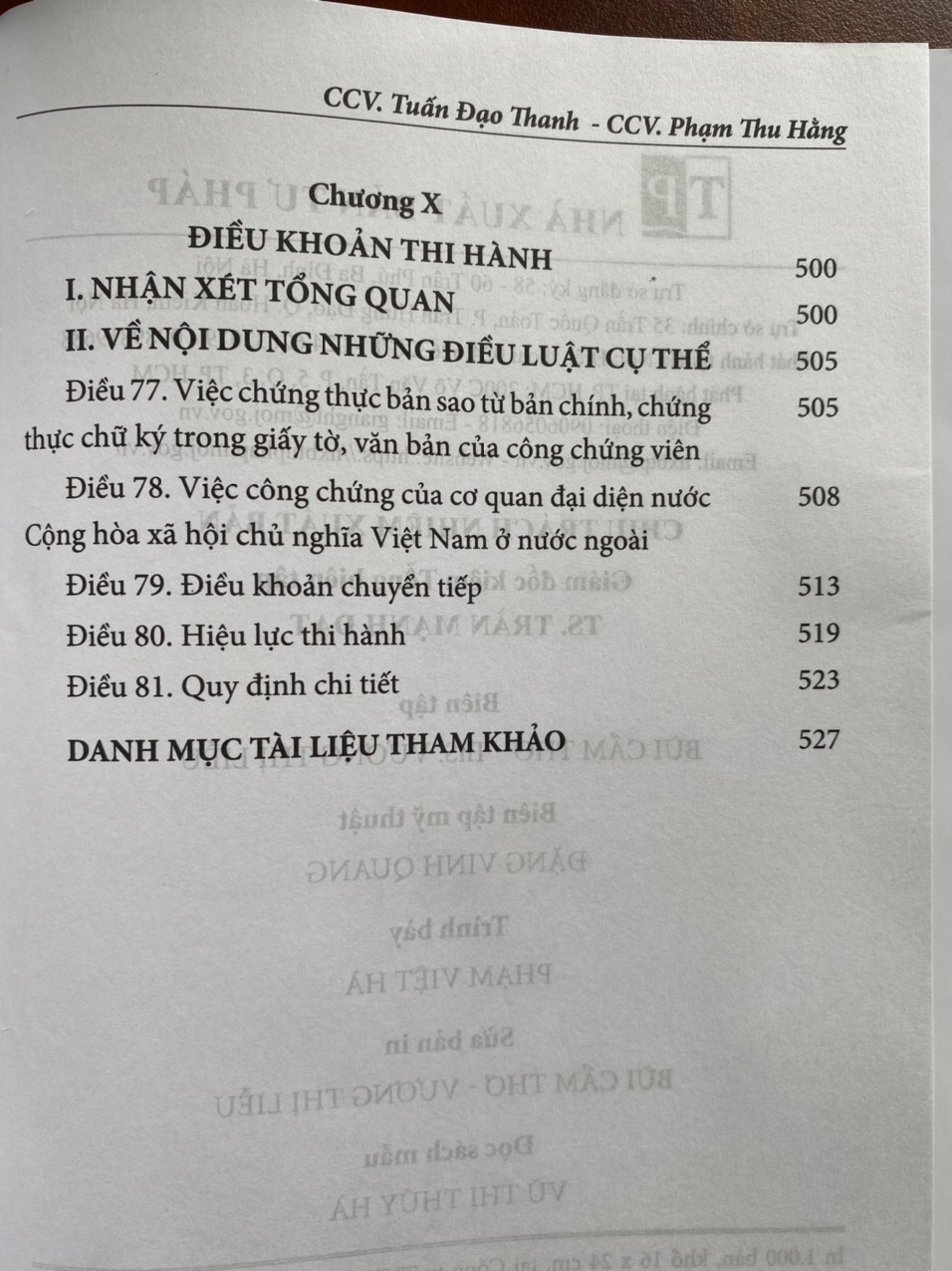 Bình Luận Luật Công Chứng Năm 2014 (tái bản lần thứ nhất) Tác giả: CCV. TUẤN ĐẠO THANH – CCV. PHẠM THU HẰNG Nhà phát hành: NXB Tư Pháp NXB: Tư Pháp Khổ sách: 16x24cm