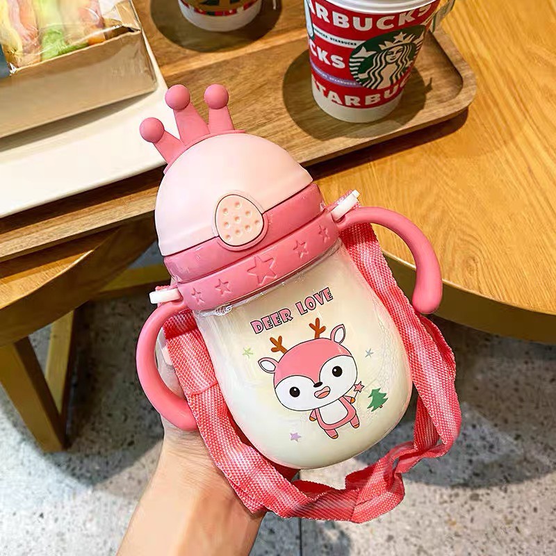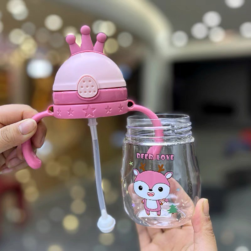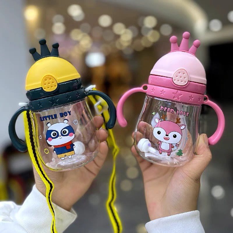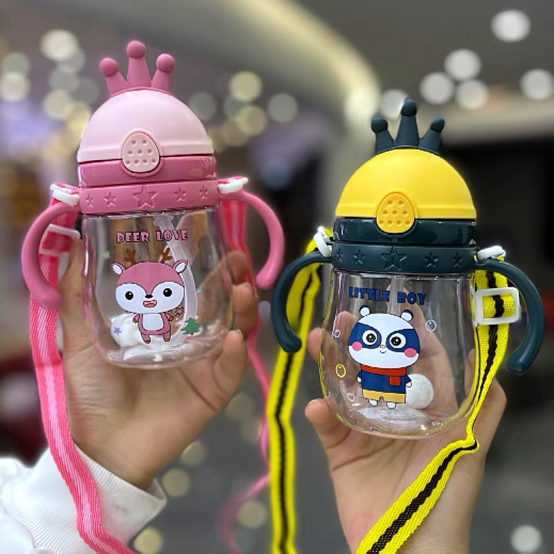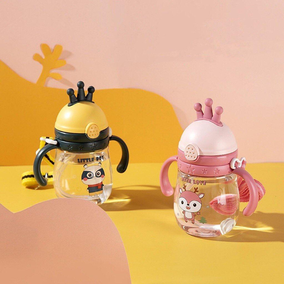 Bình tập uống nước cho bé hình vương miện 350ml bằng nhựa PP chịu nhiệt cao cấp có ống hút #Shorts