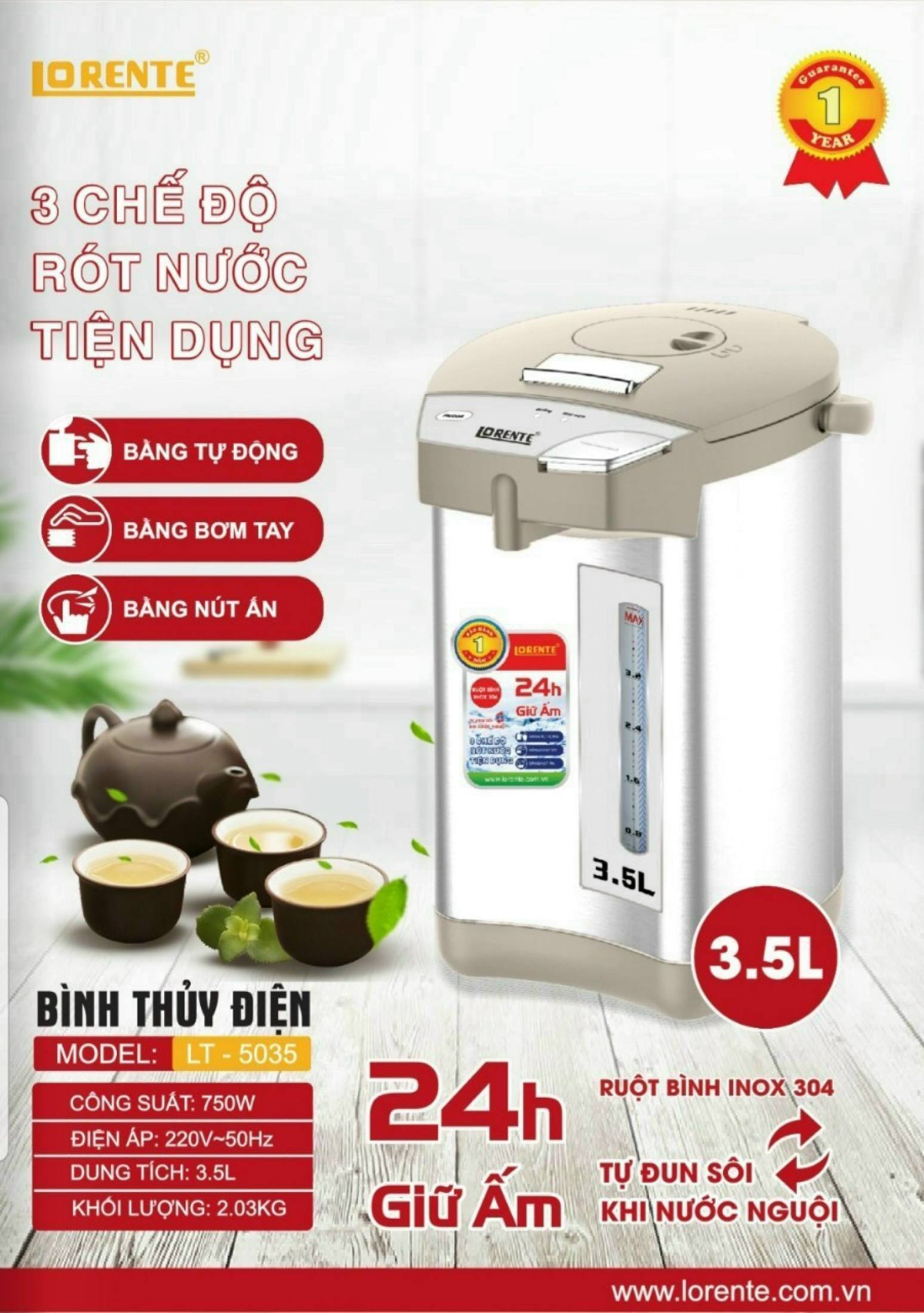 Nếu bạn đang muốn sở hữu cho gia đình mình một chiếc bình thủy điện nhưng chưa biết mua của thương hiệu nào cho chất lượng, thì hôm nay chúng tôi xin giới thiệu đến bạn một sản phẩm đến từ thương hiệu nổi tiếng Lorente đó là đang rất được ưa chuộng trên thị trường hiện nay.