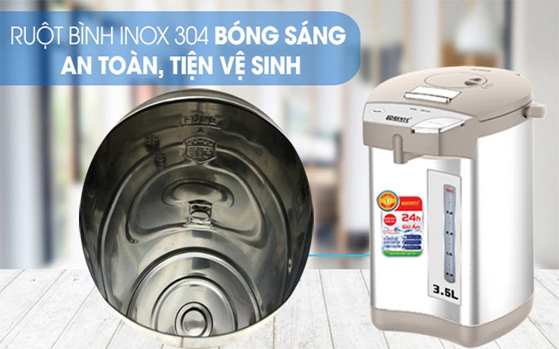 sở hữu thiết kế đẹp mắt, sang trọng, chất liệu cấu tạo cao cấp với ruột bình làm bằng chất liệu inox 304 có độ bền cao, không sản sinh ra độc tố trong quá trình sử dụng đồng thời giúp vệ sinh bình một cách dễ dàng, hạn chế bám cặn, vỏ ngoài bằng thép không gỉ sơn tĩnh điện sáng bóng dễ dàng vệ sinh lau chùi khi bị bám bẩn, khả năng chịu lực, chịu nhiệt cao, nắp và chân bình được làm từ nhựa cách nhiệt, cách điện cao cấp đảm bảo an toàn cho người sử dụng, có thiết kế quai xách bằng nhựa cho bạn dễ dàng cầm nắm, xách bình di chuyển đi mọi nơi tiện dụng, thiết kế thang đo mực nước cho bạn dễ dàng quan sát thêm nước tiện dụng.